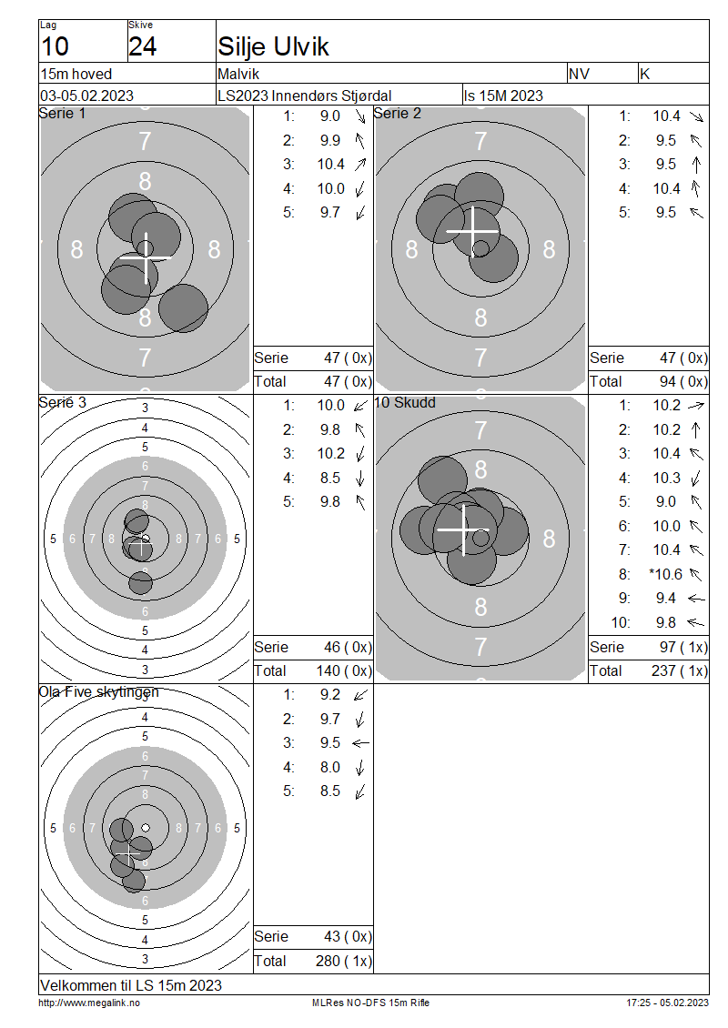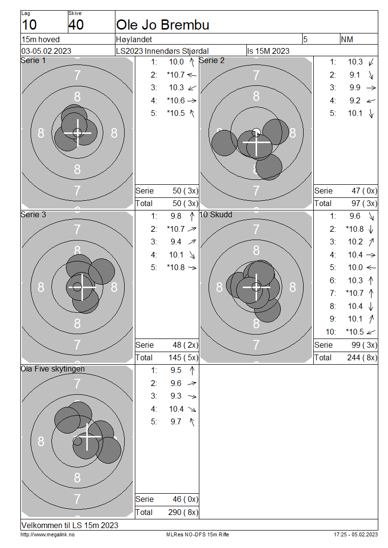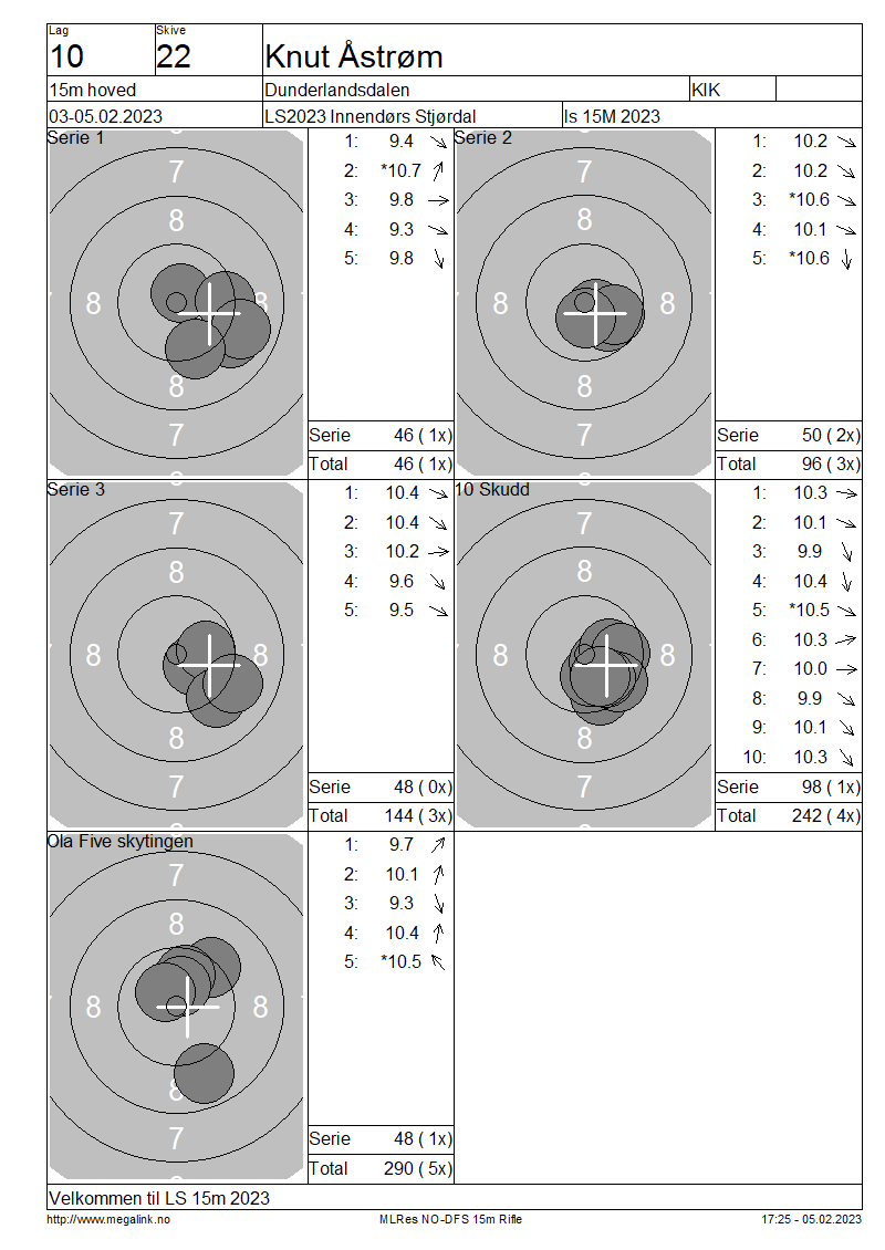 Resultater lag 10 15m hoved