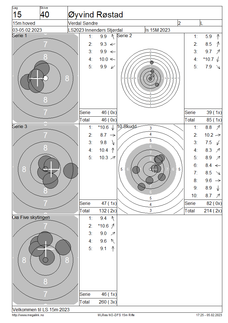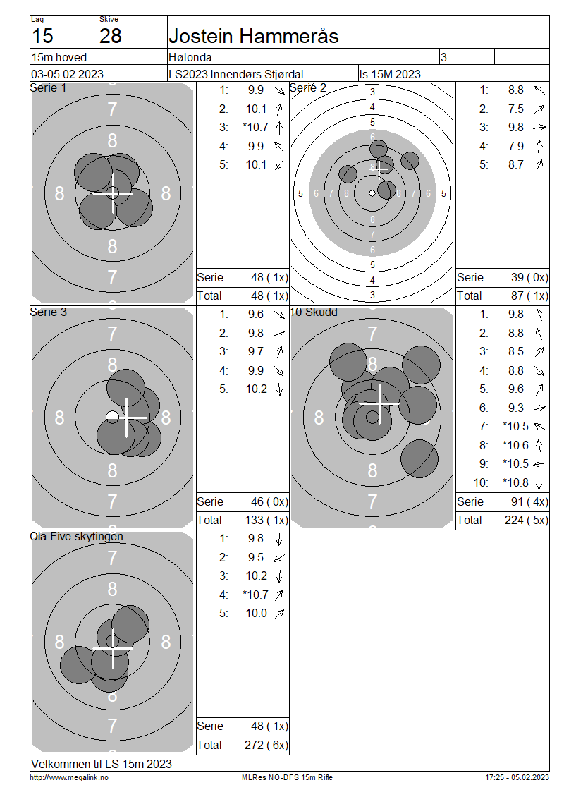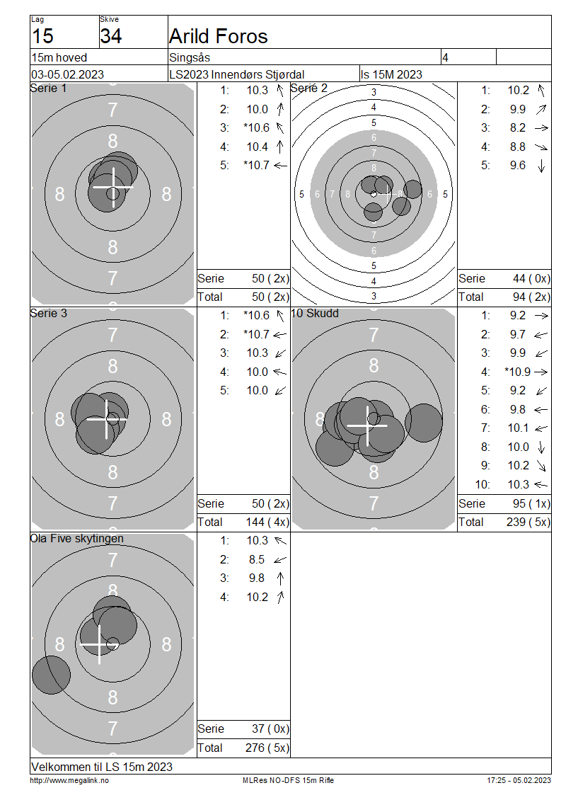 Resultater lag 15 15m hoved