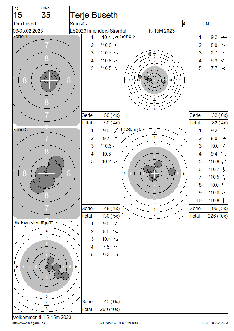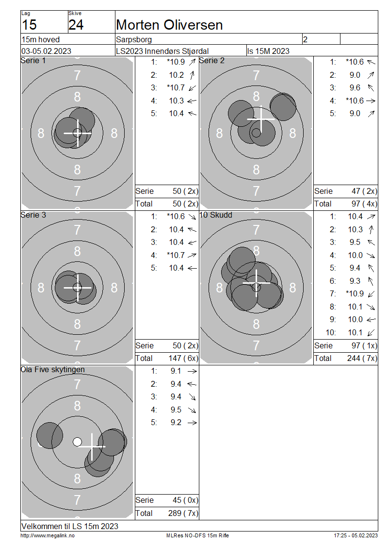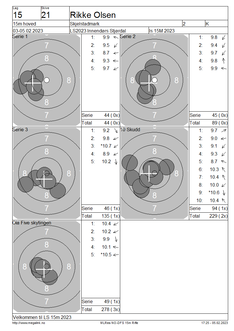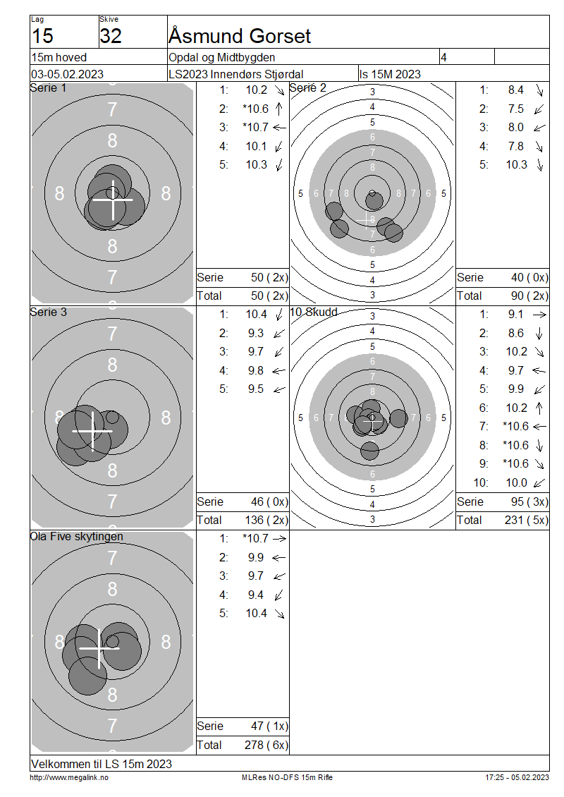Resultater lag 15 15m hoved