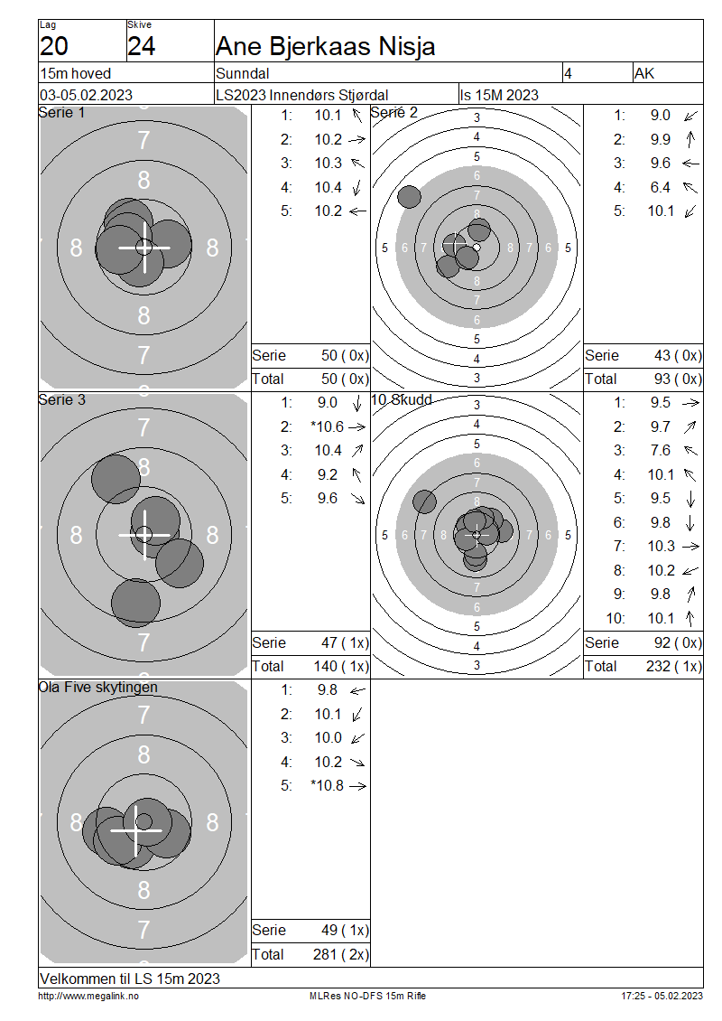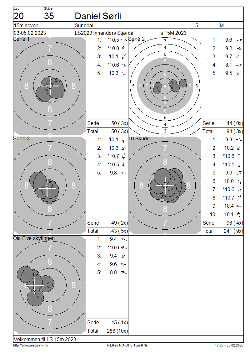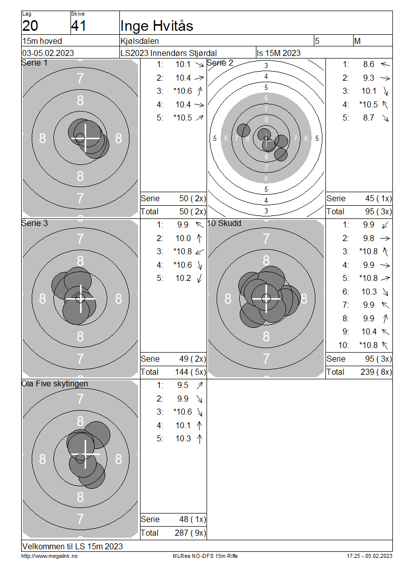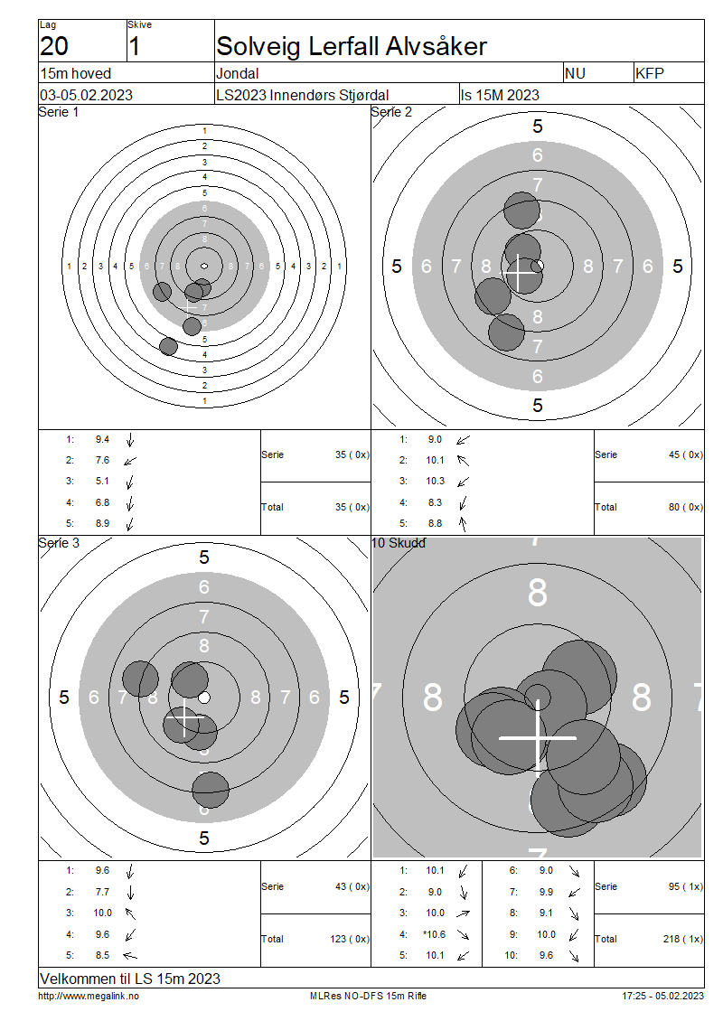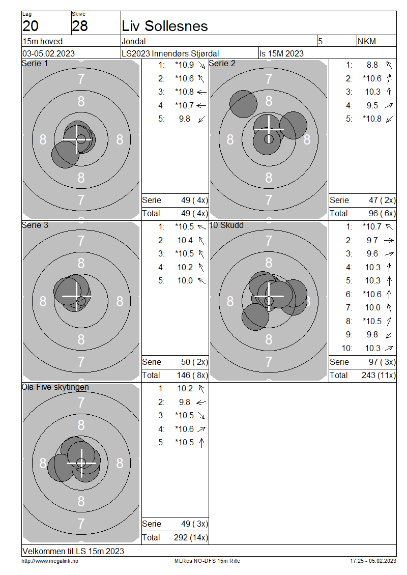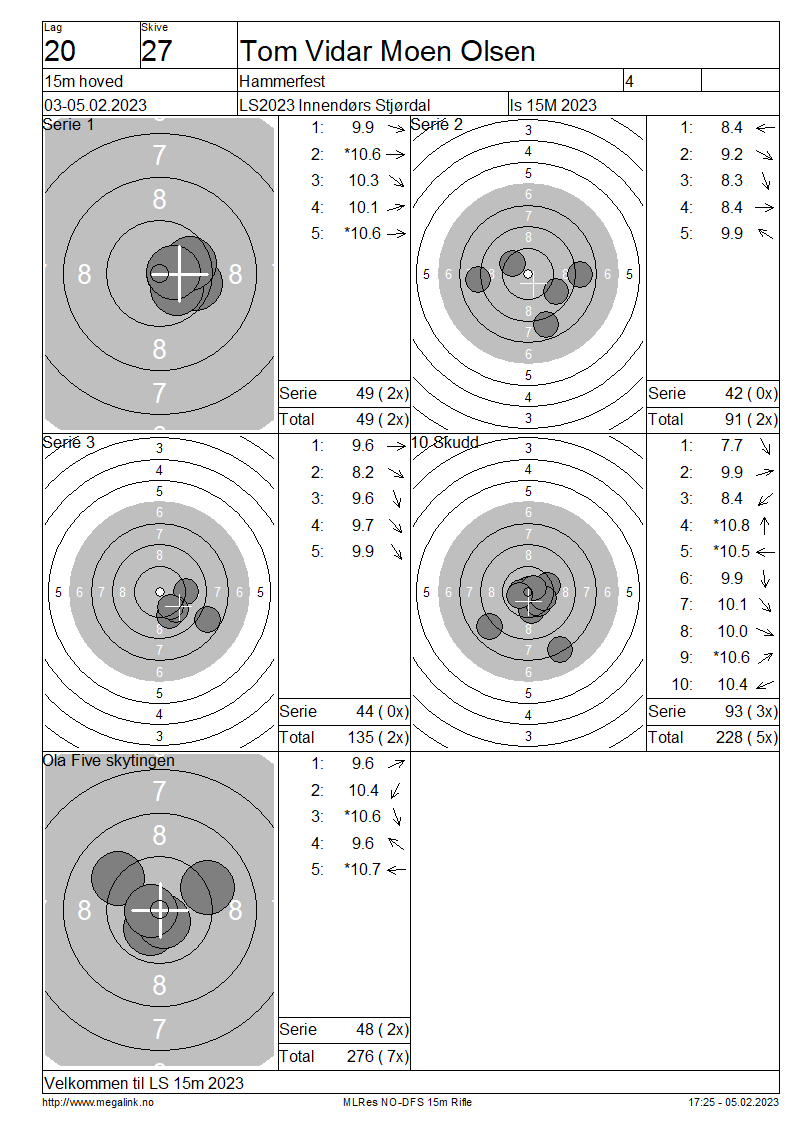 Resultater lag 20 15m hoved