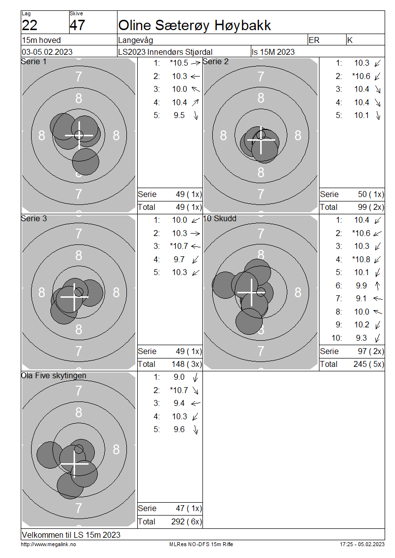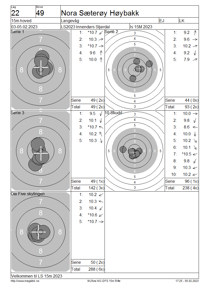 Resultater lag 22 15m hoved
