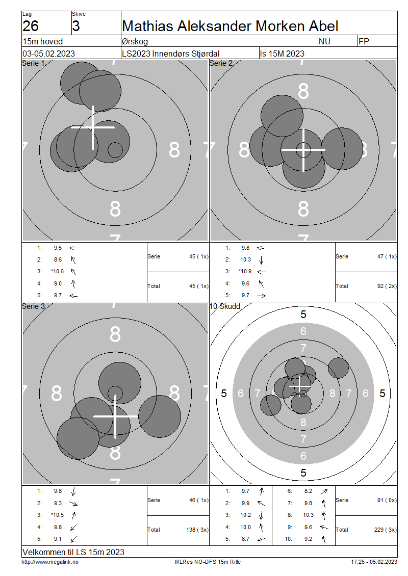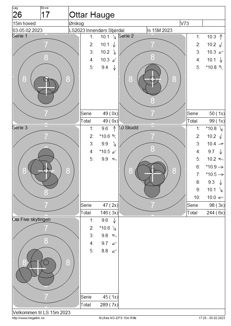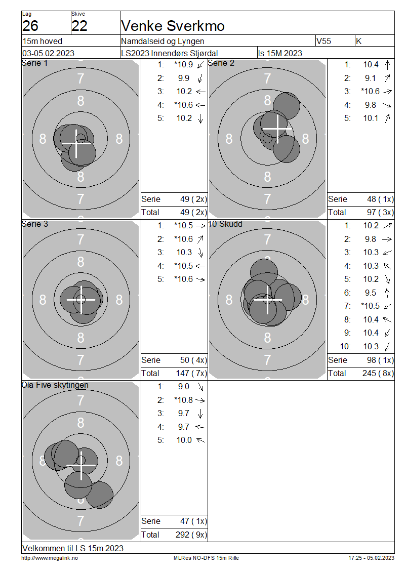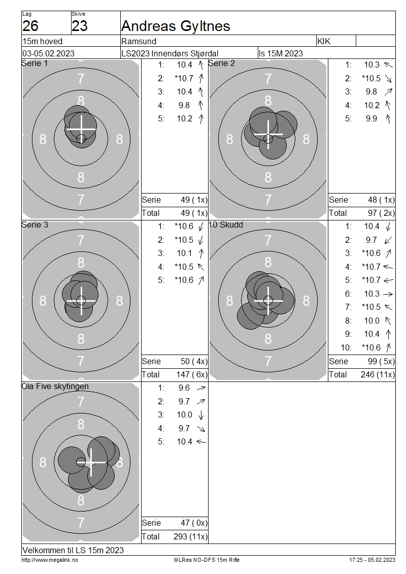 Resultater lag 26 15m hoved