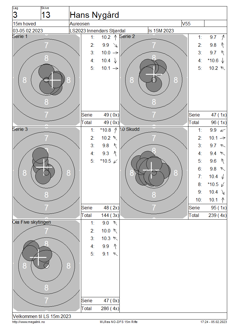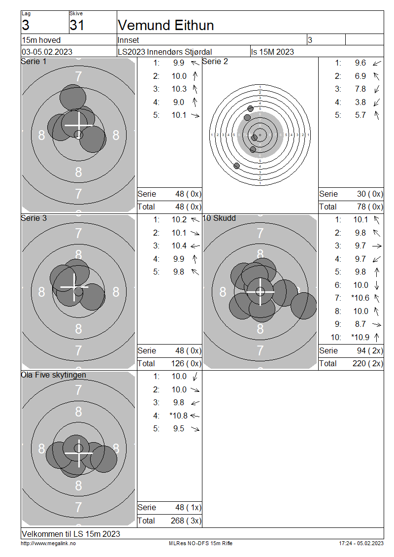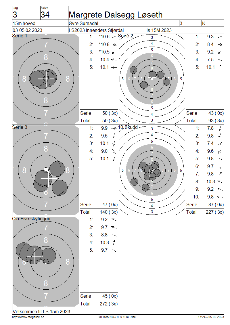 Resultater lag 3 15m hoved