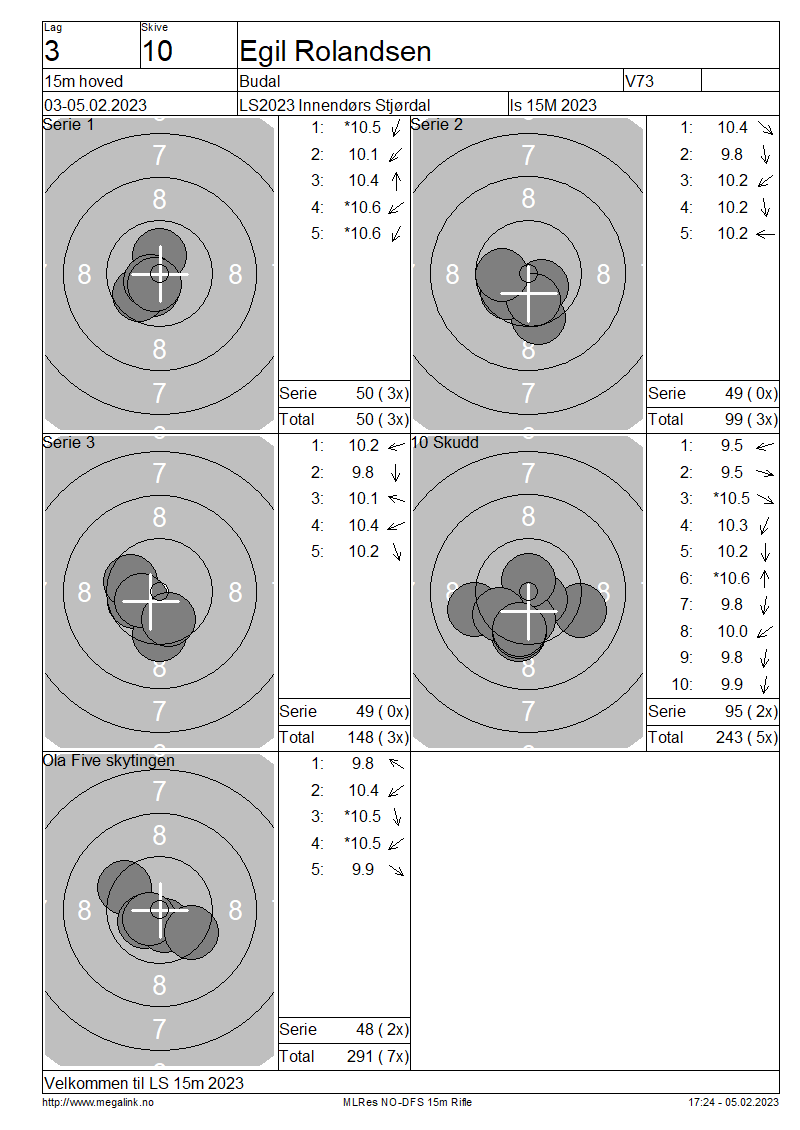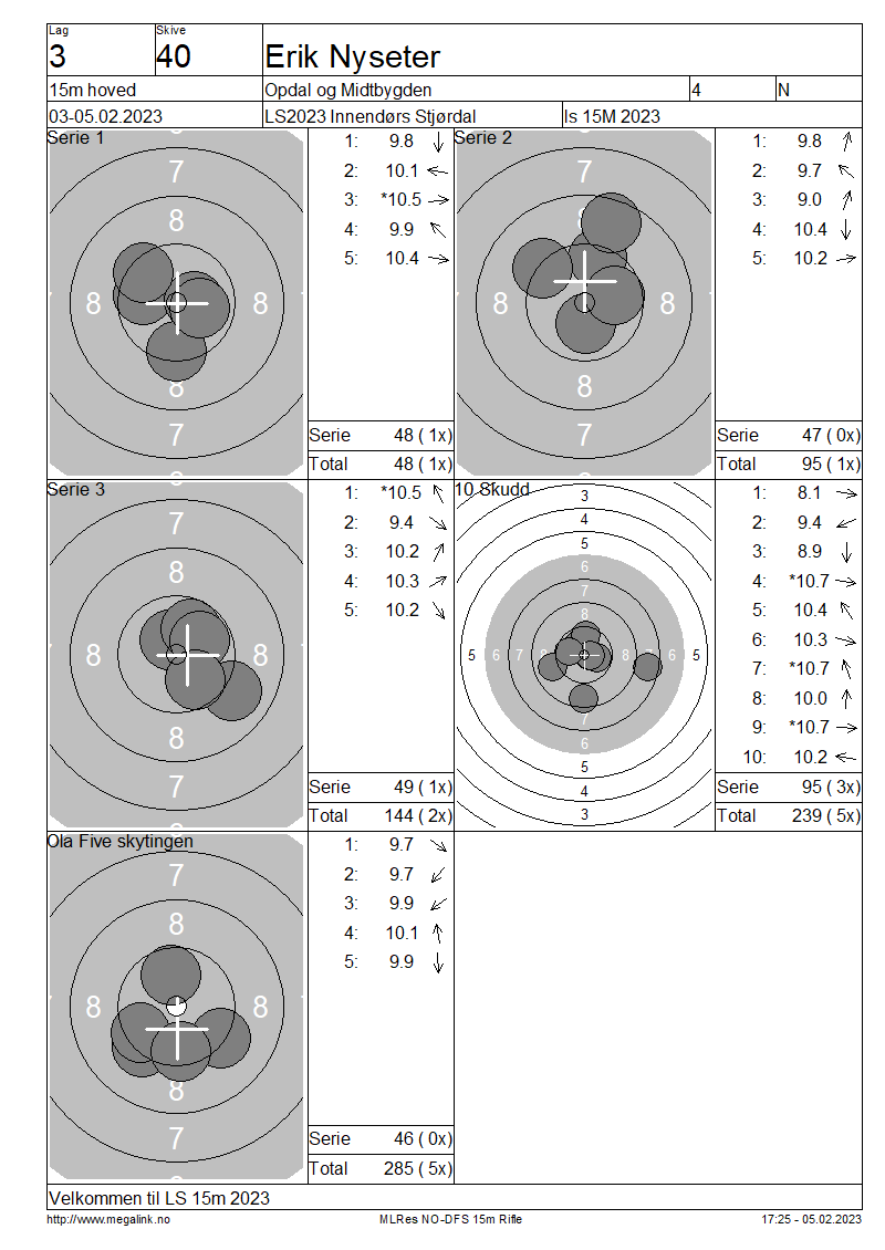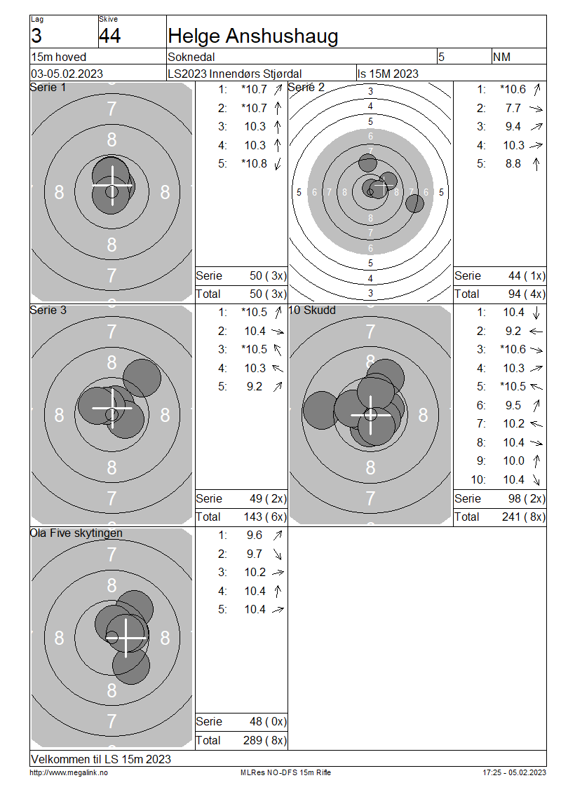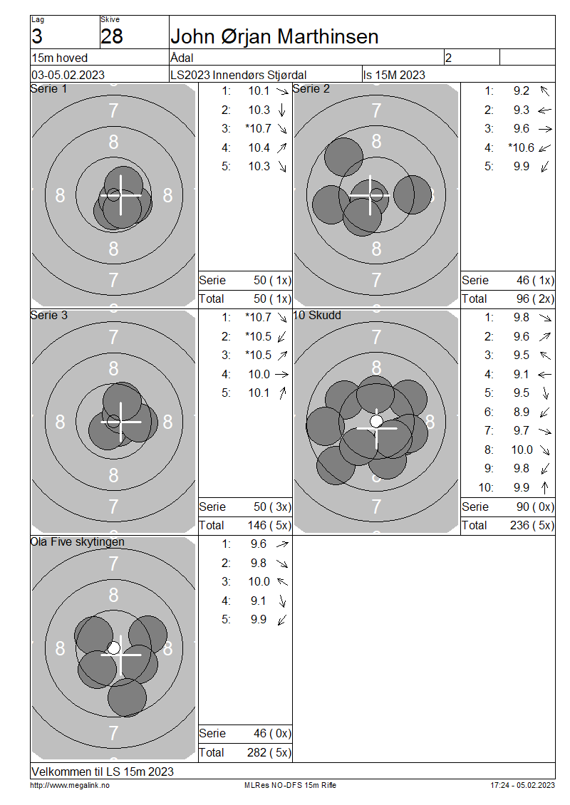Resultater lag 3 15m hoved