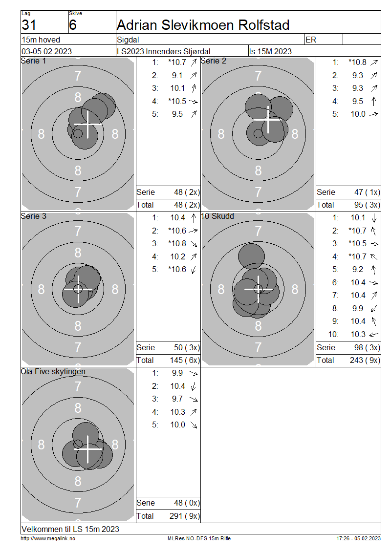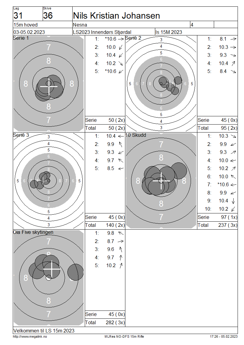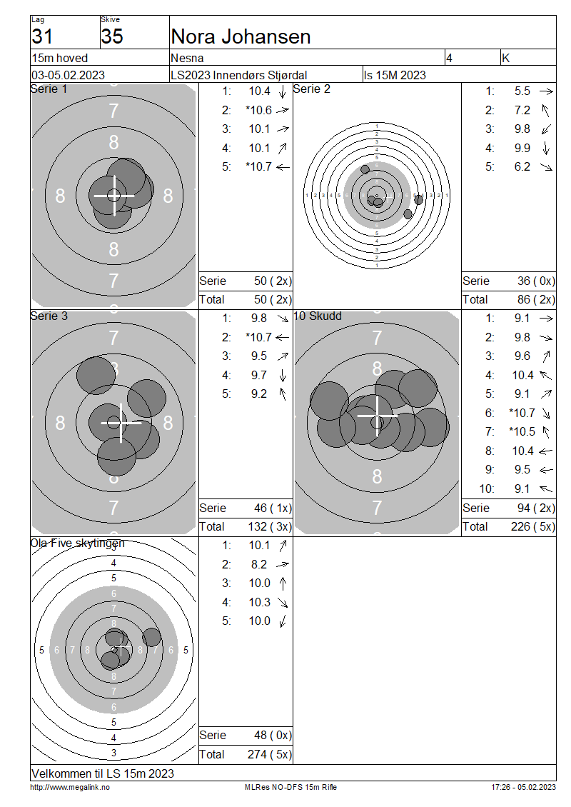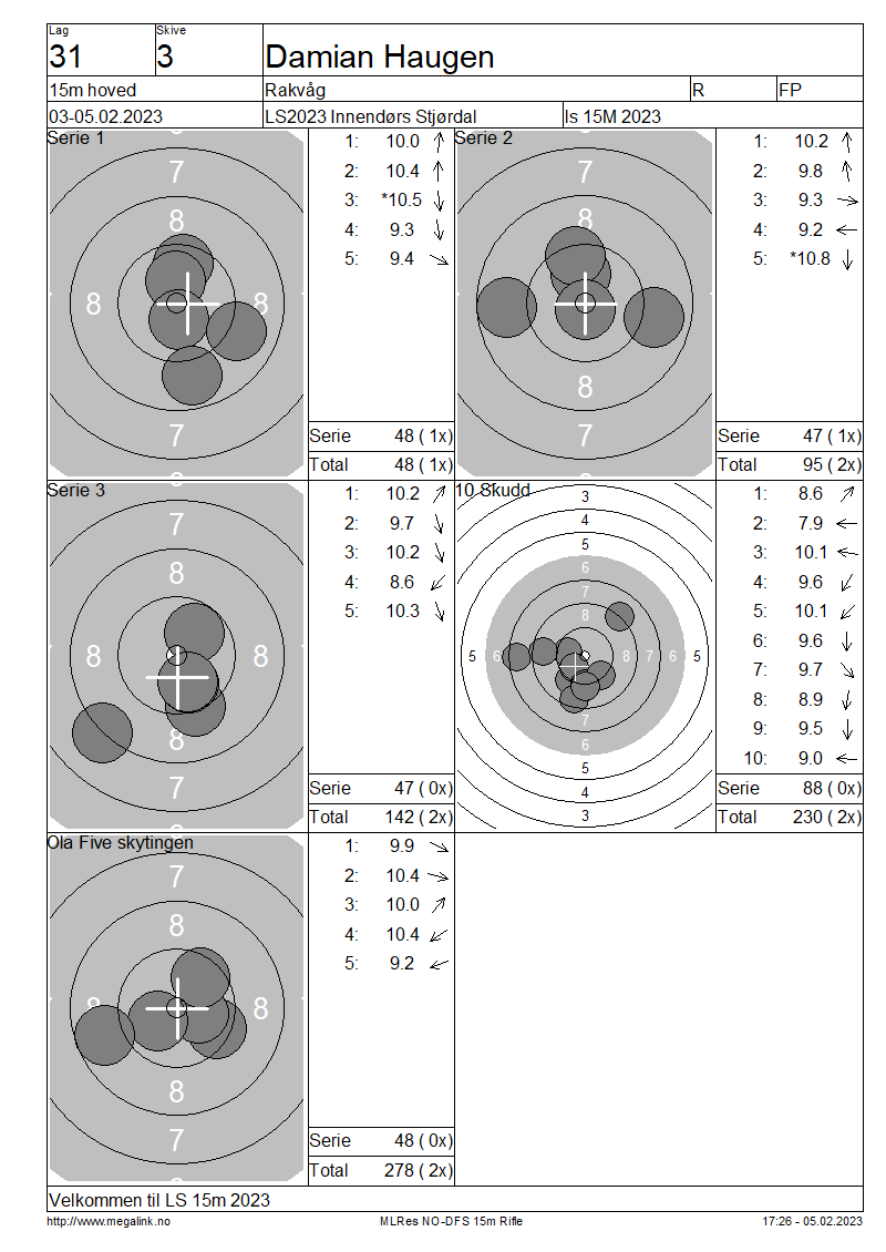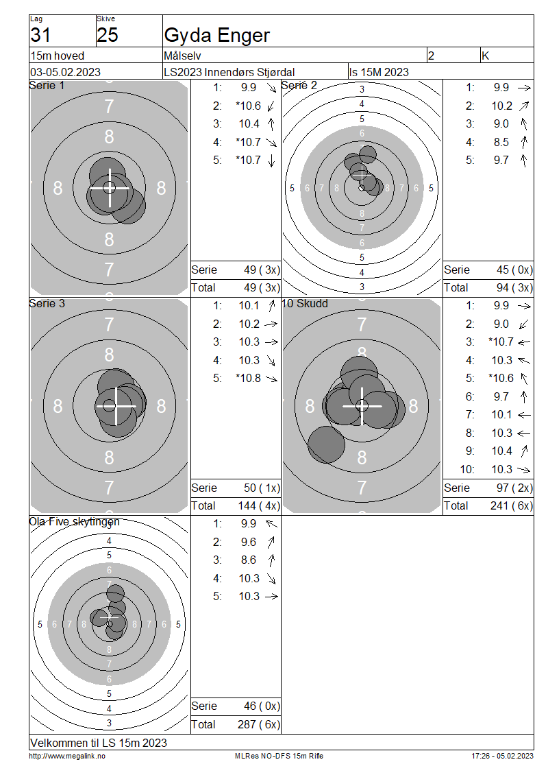 Resultater lag 31 15m hoved