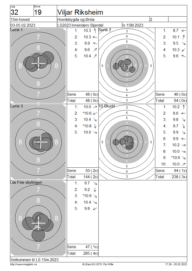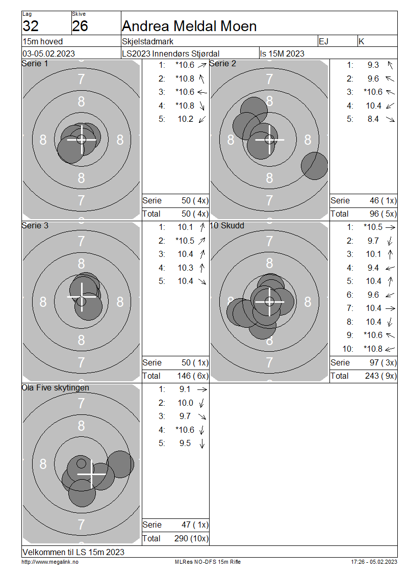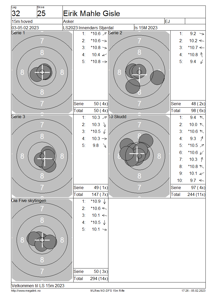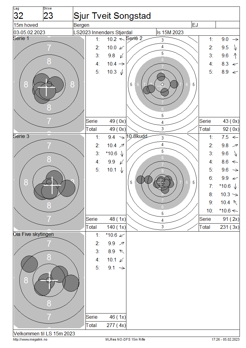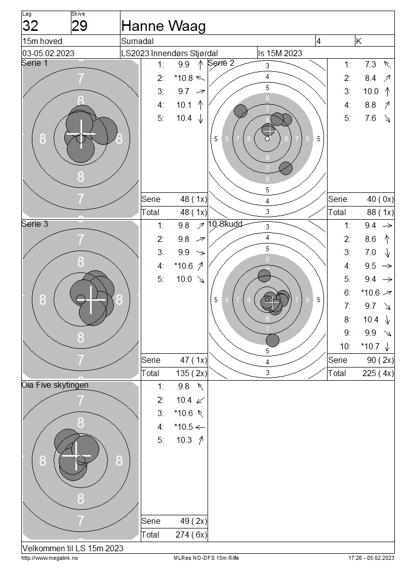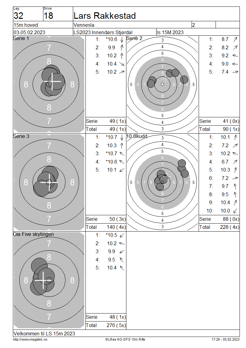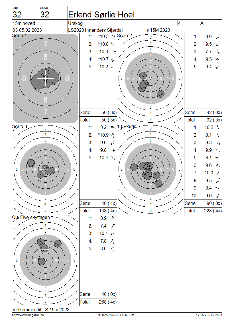 Resultater lag 32 15m hoved