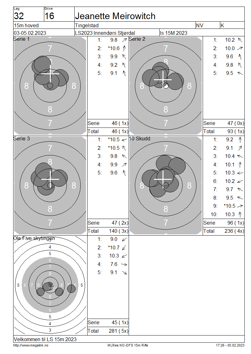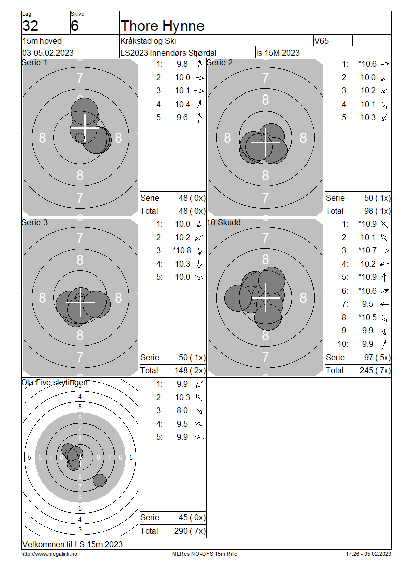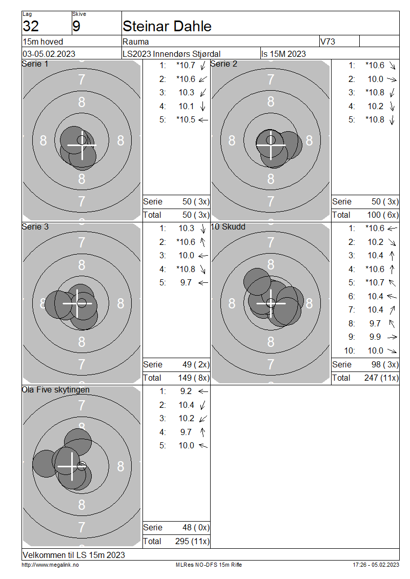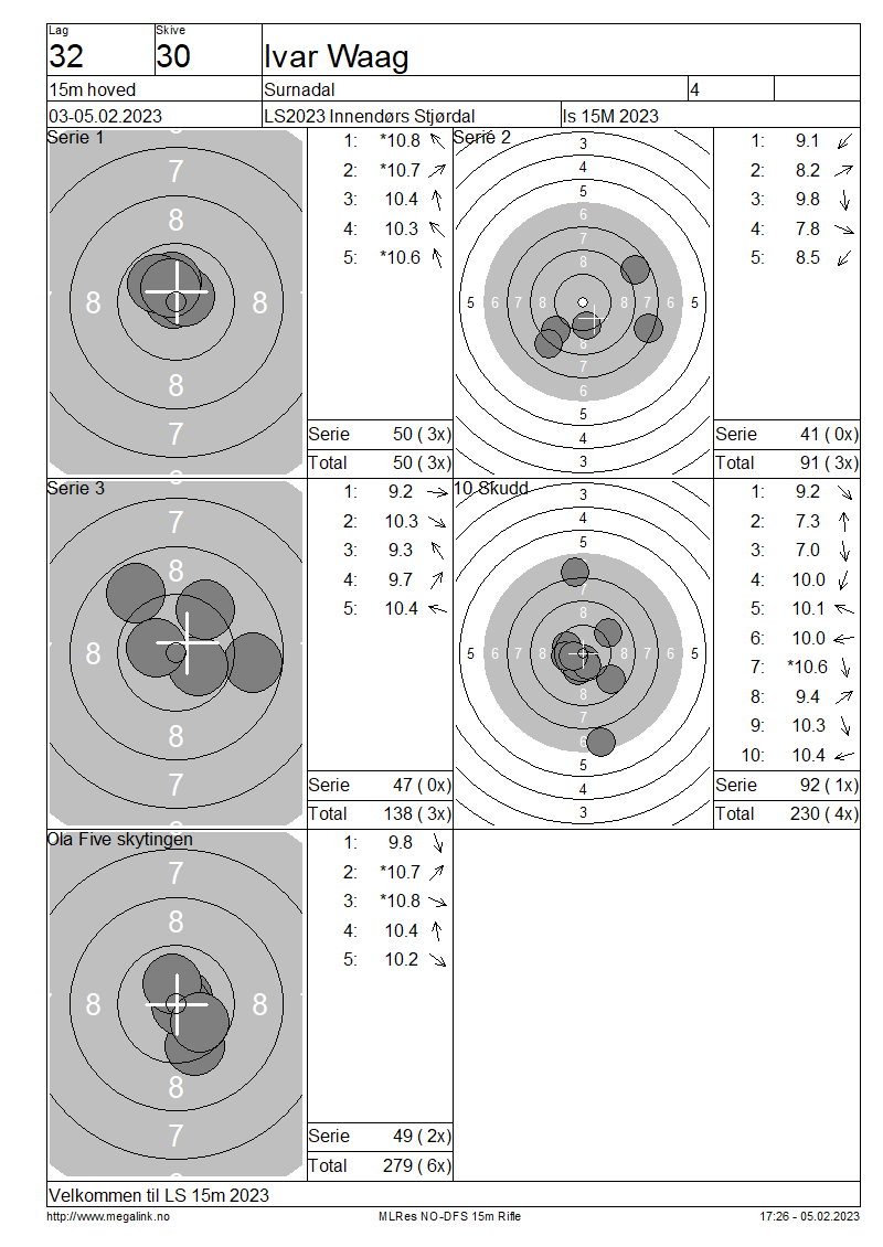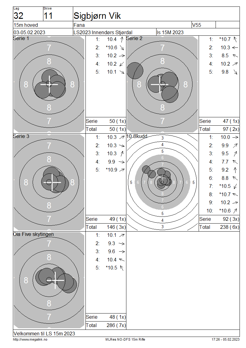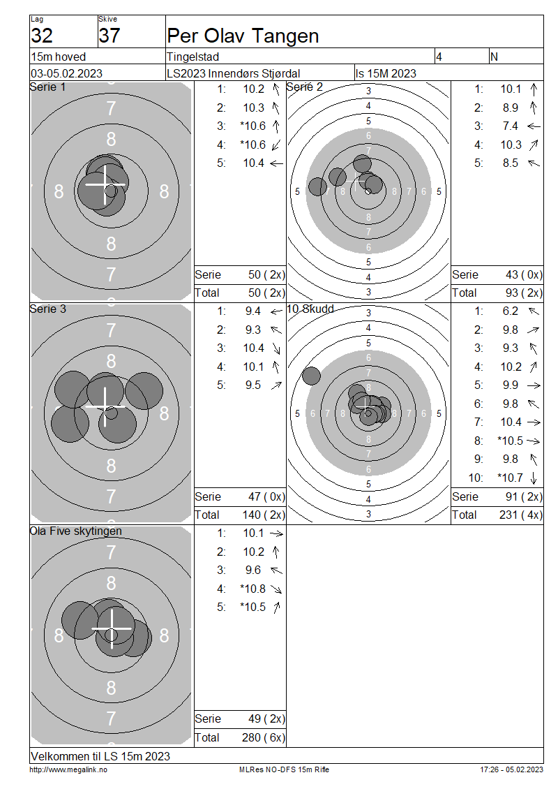 Resultater lag 32 15m hoved