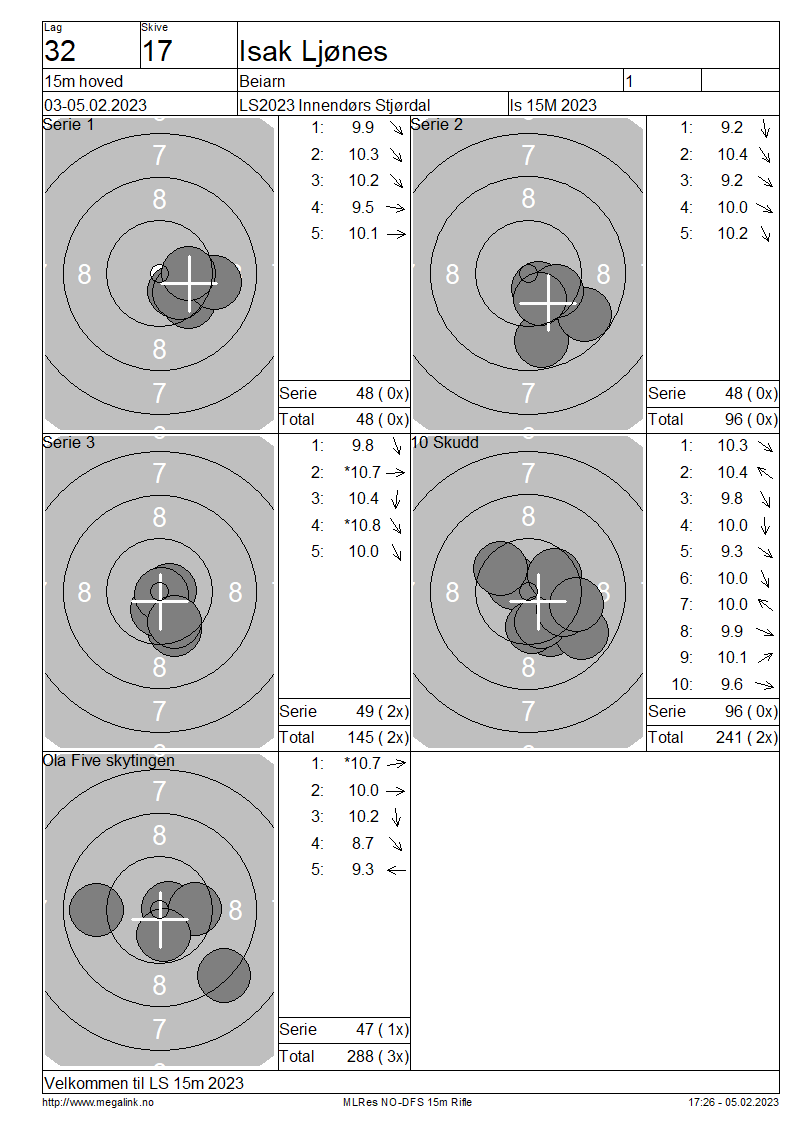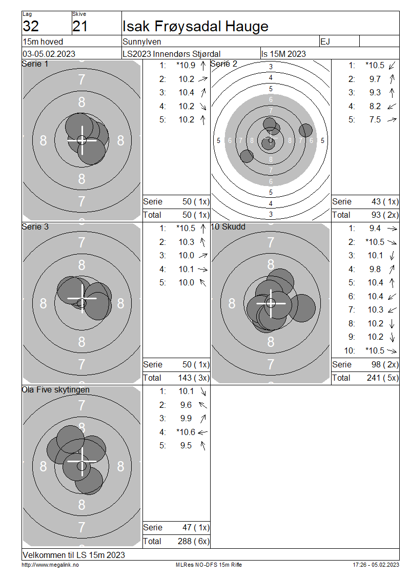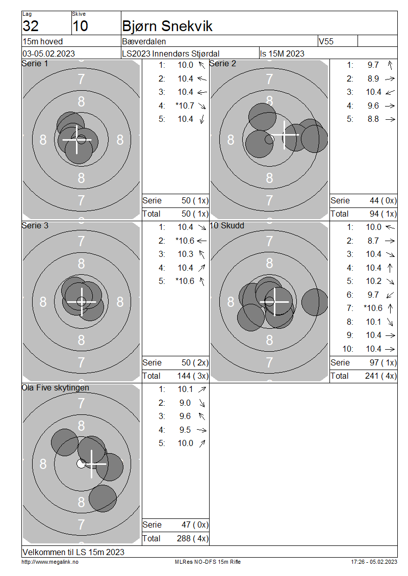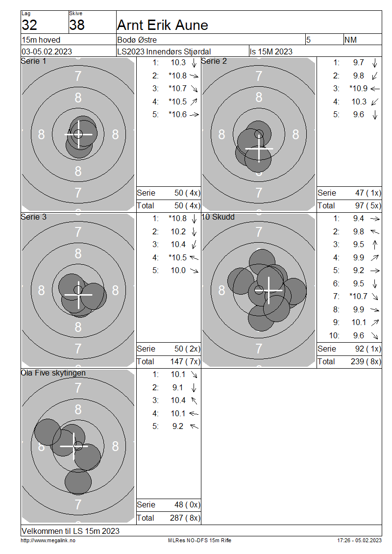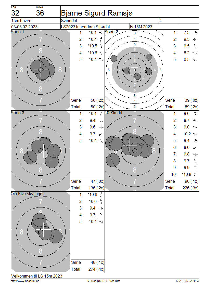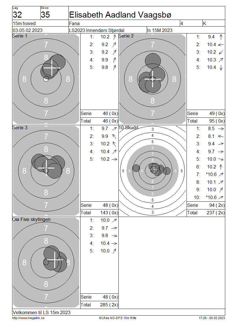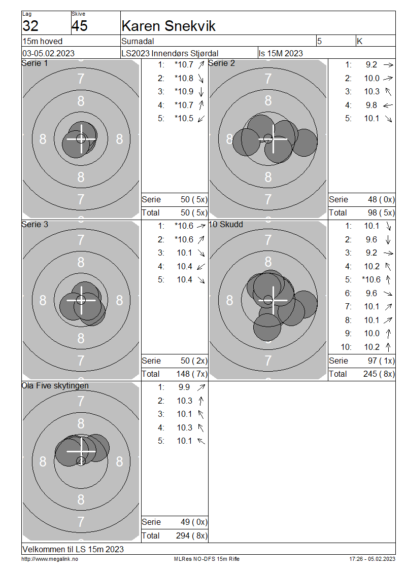Resultater lag 32 15m hoved
