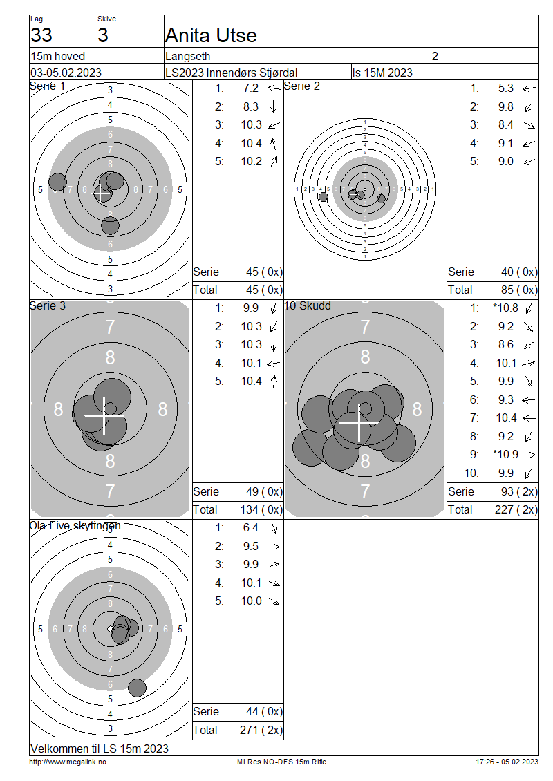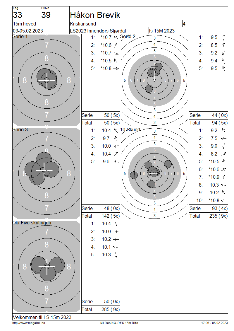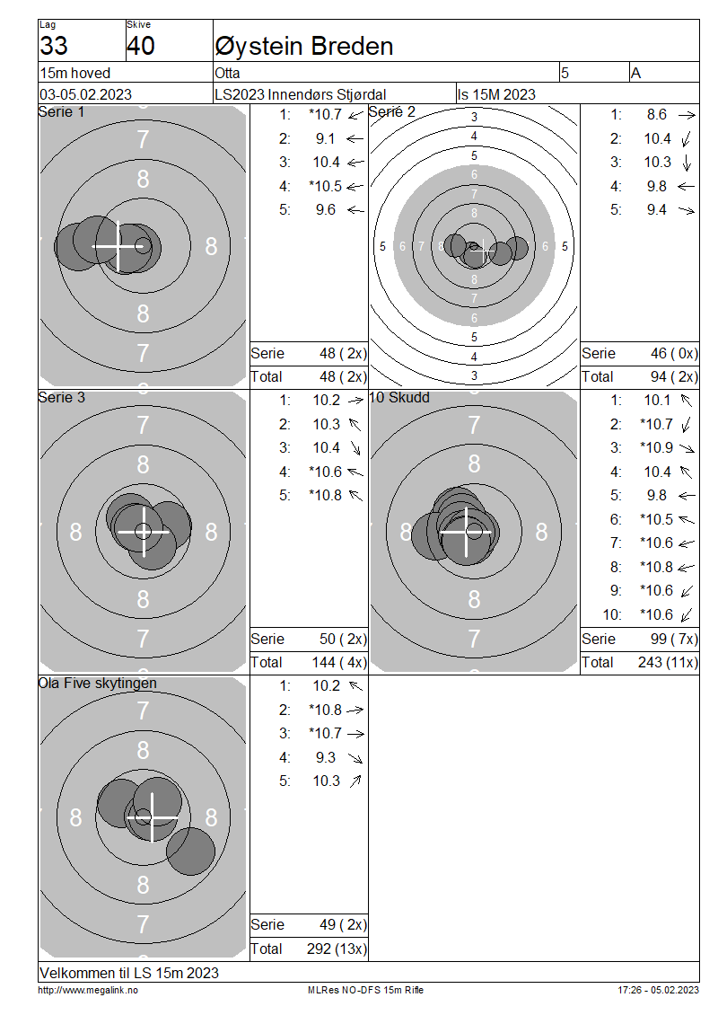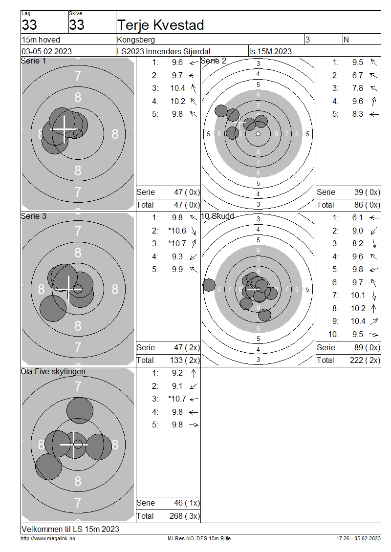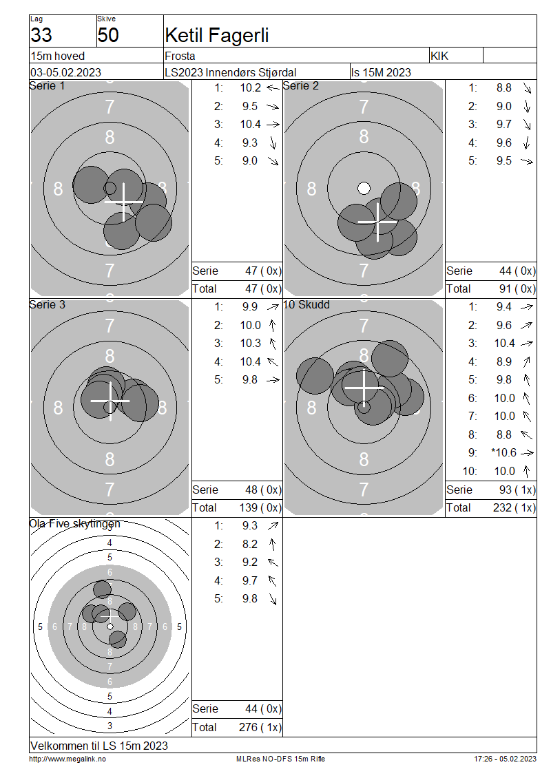 Resultater lag 33 15m hoved