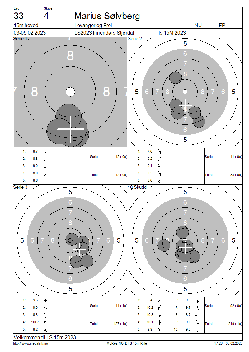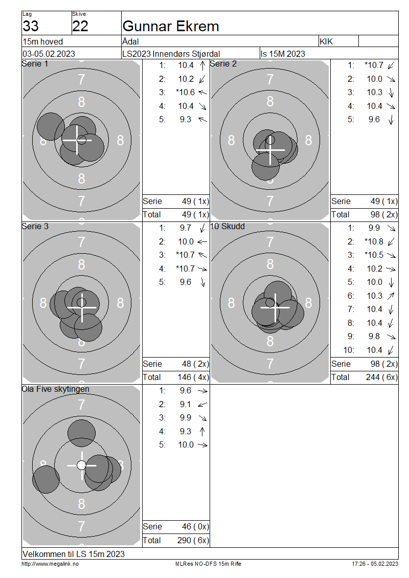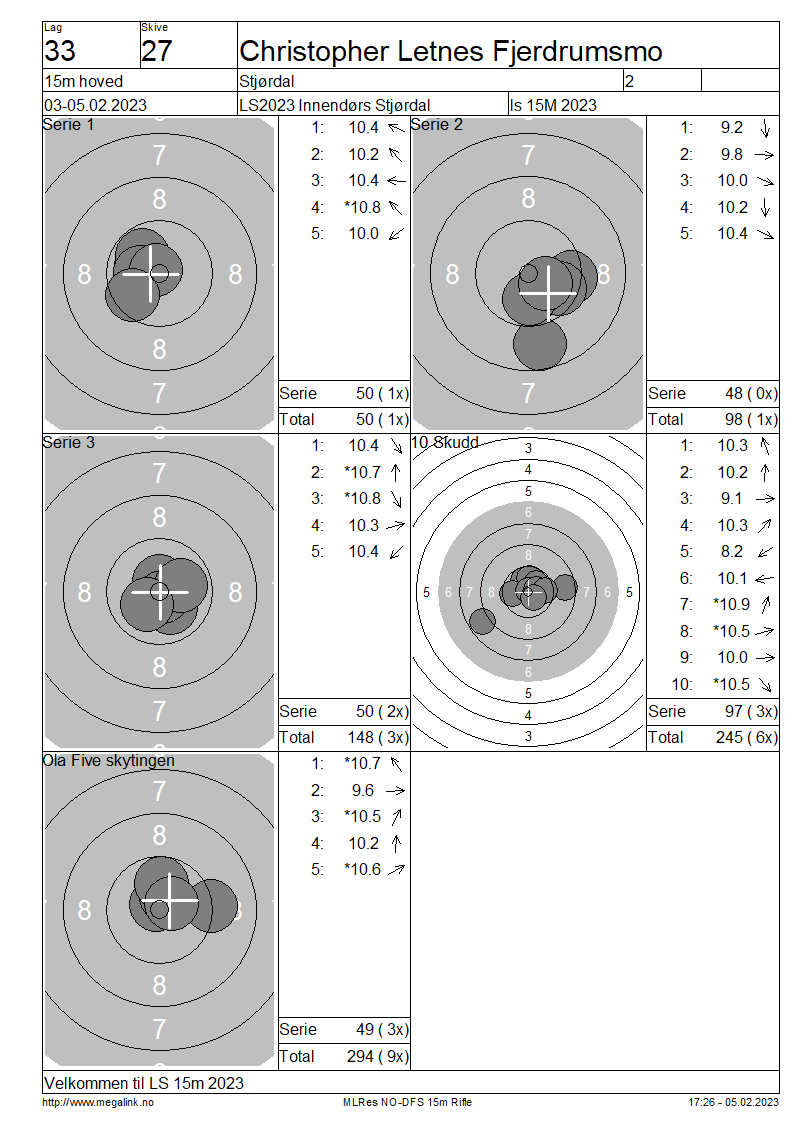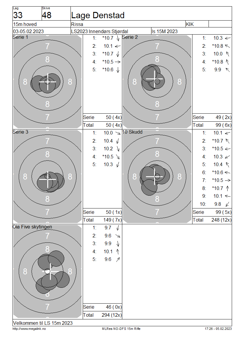 Resultater lag 33 15m hoved