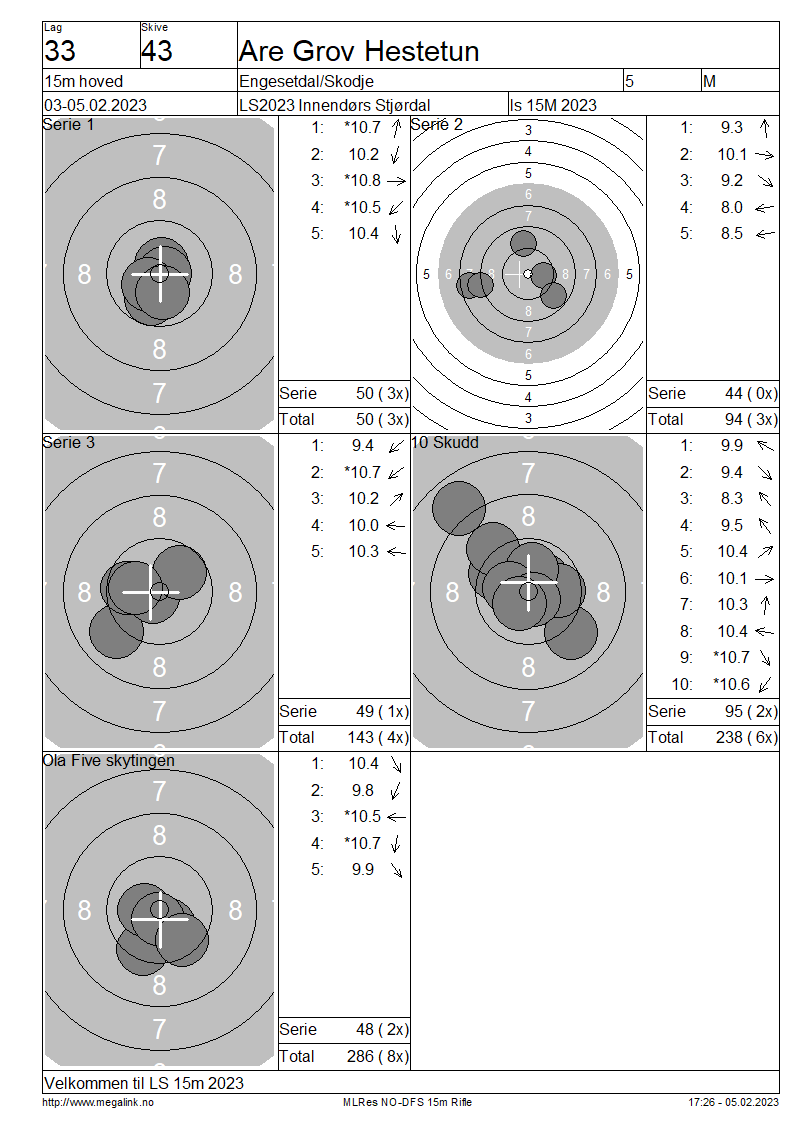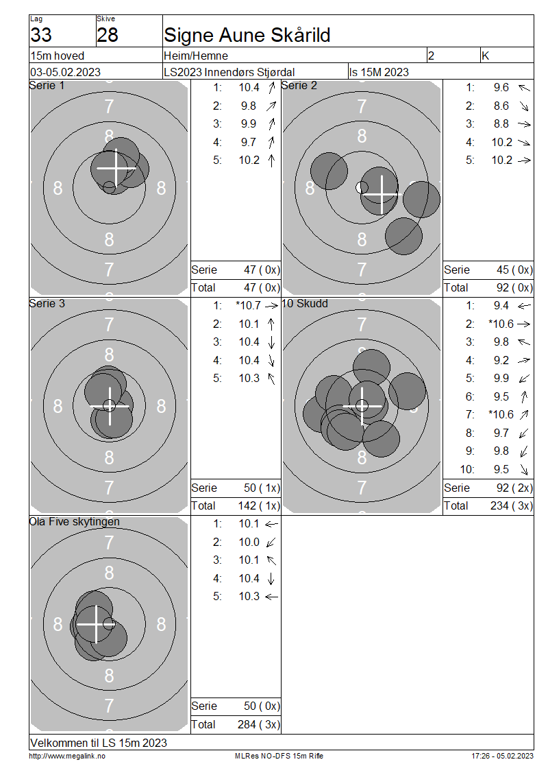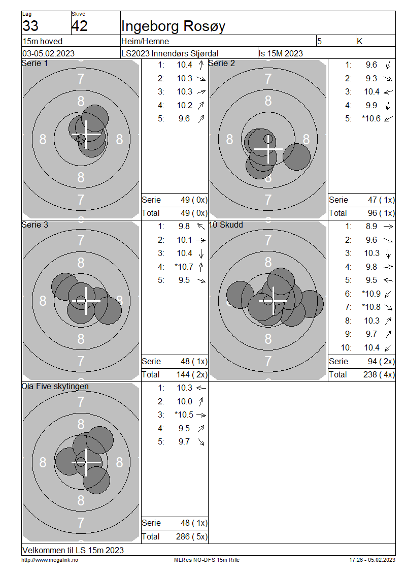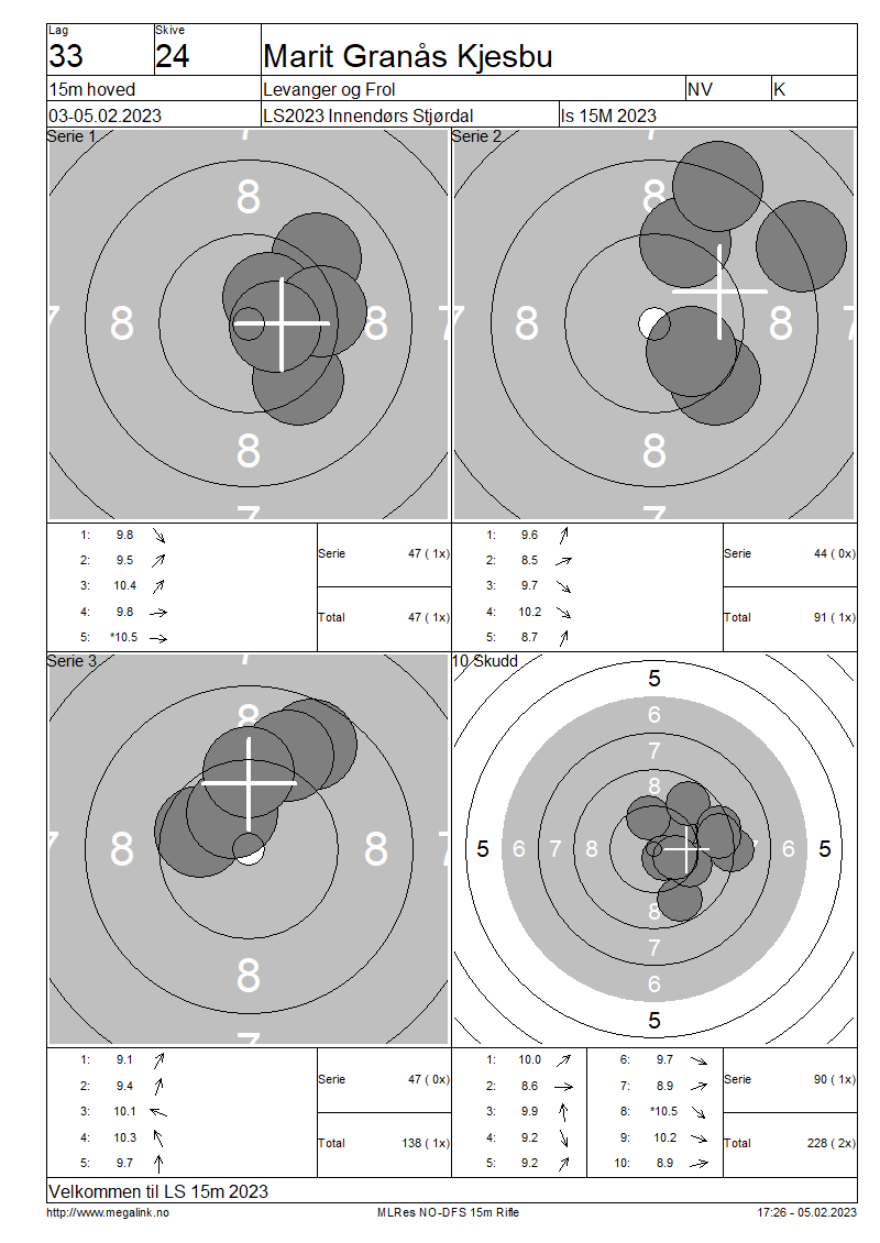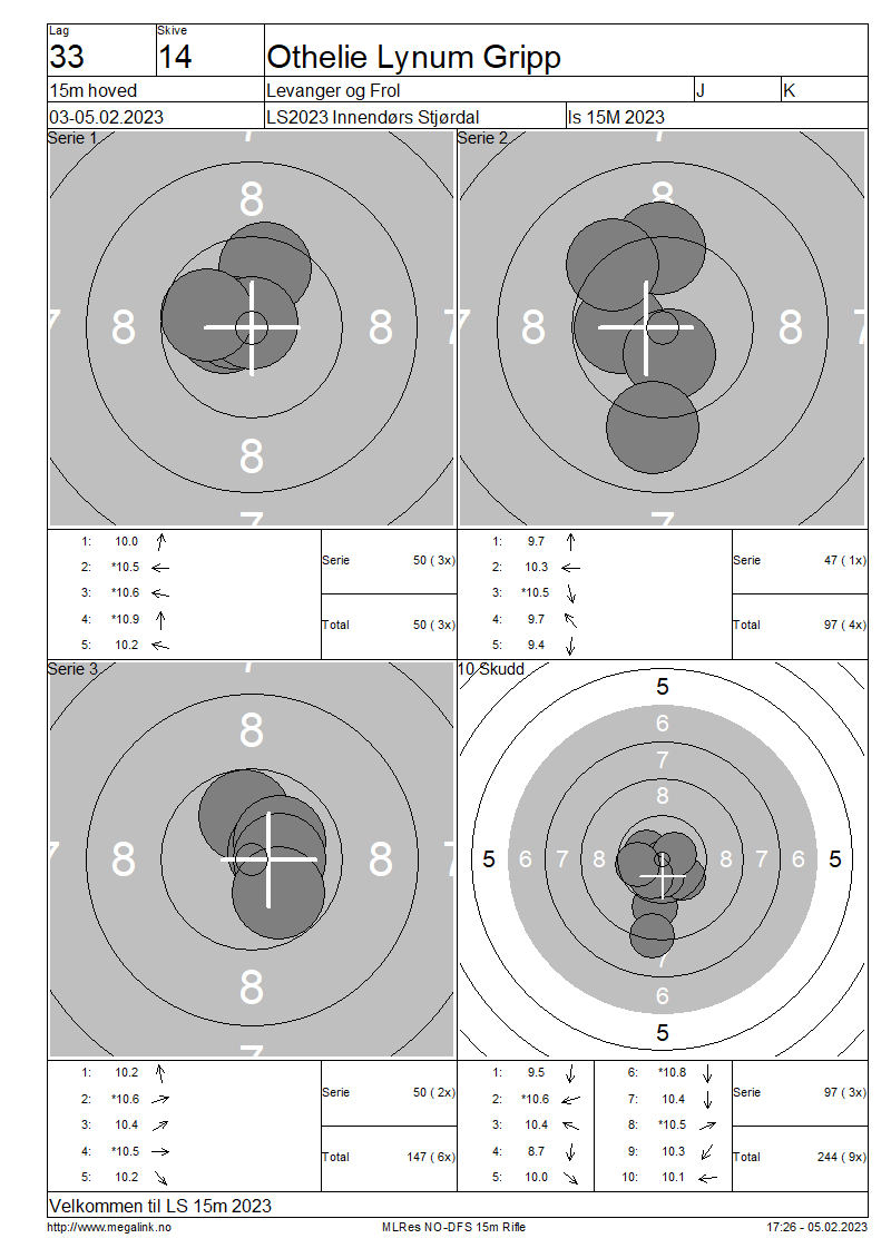 Resultater lag 33 15m hoved
