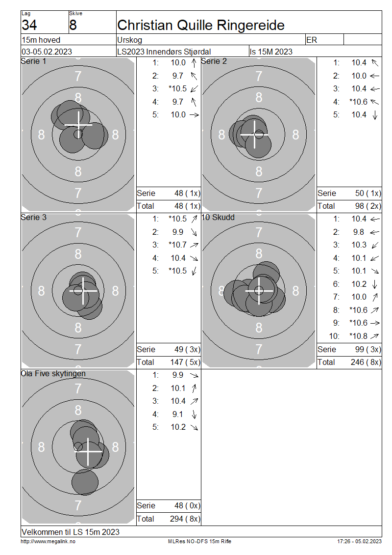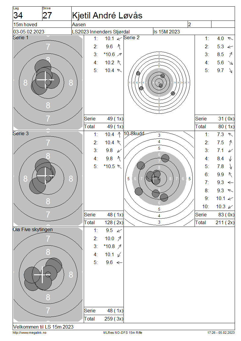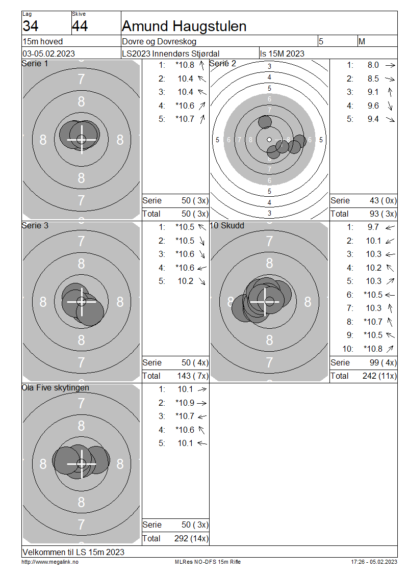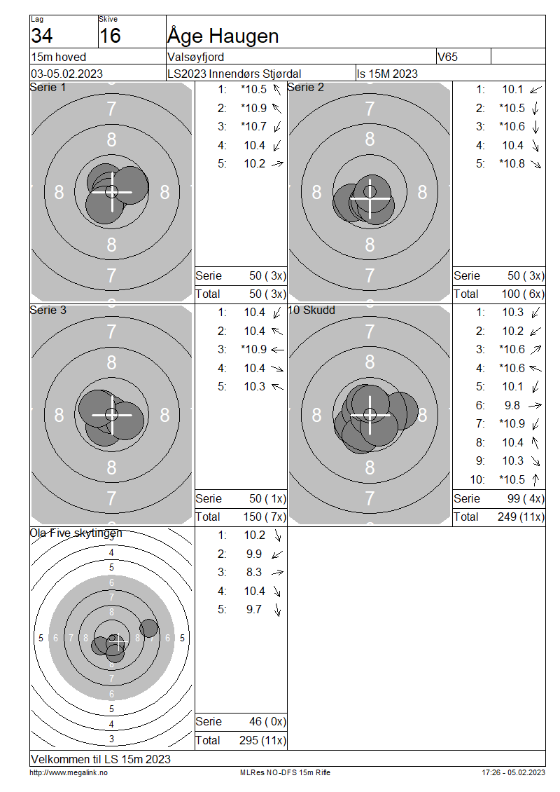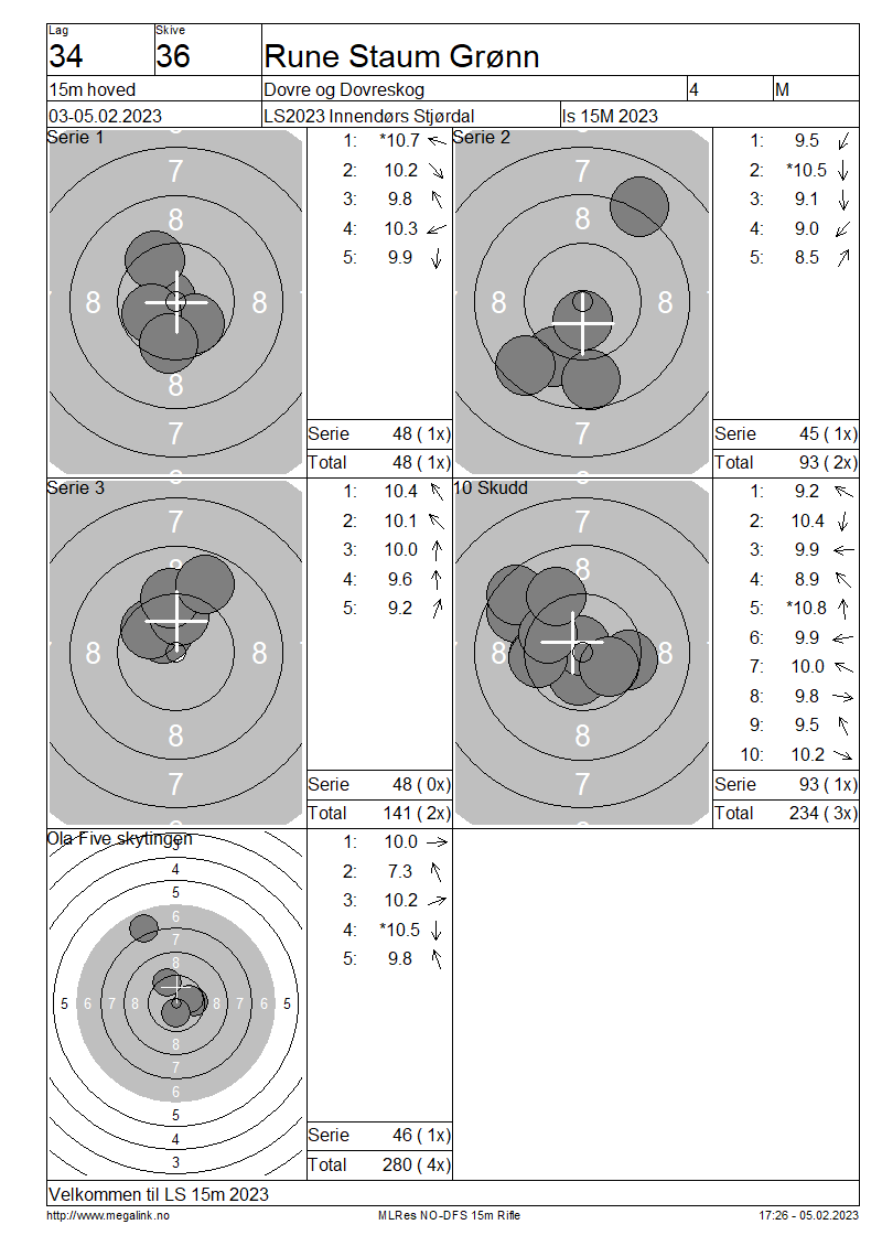 Resultater lag 34 15m hoved