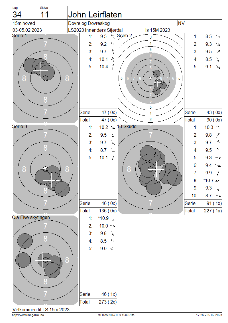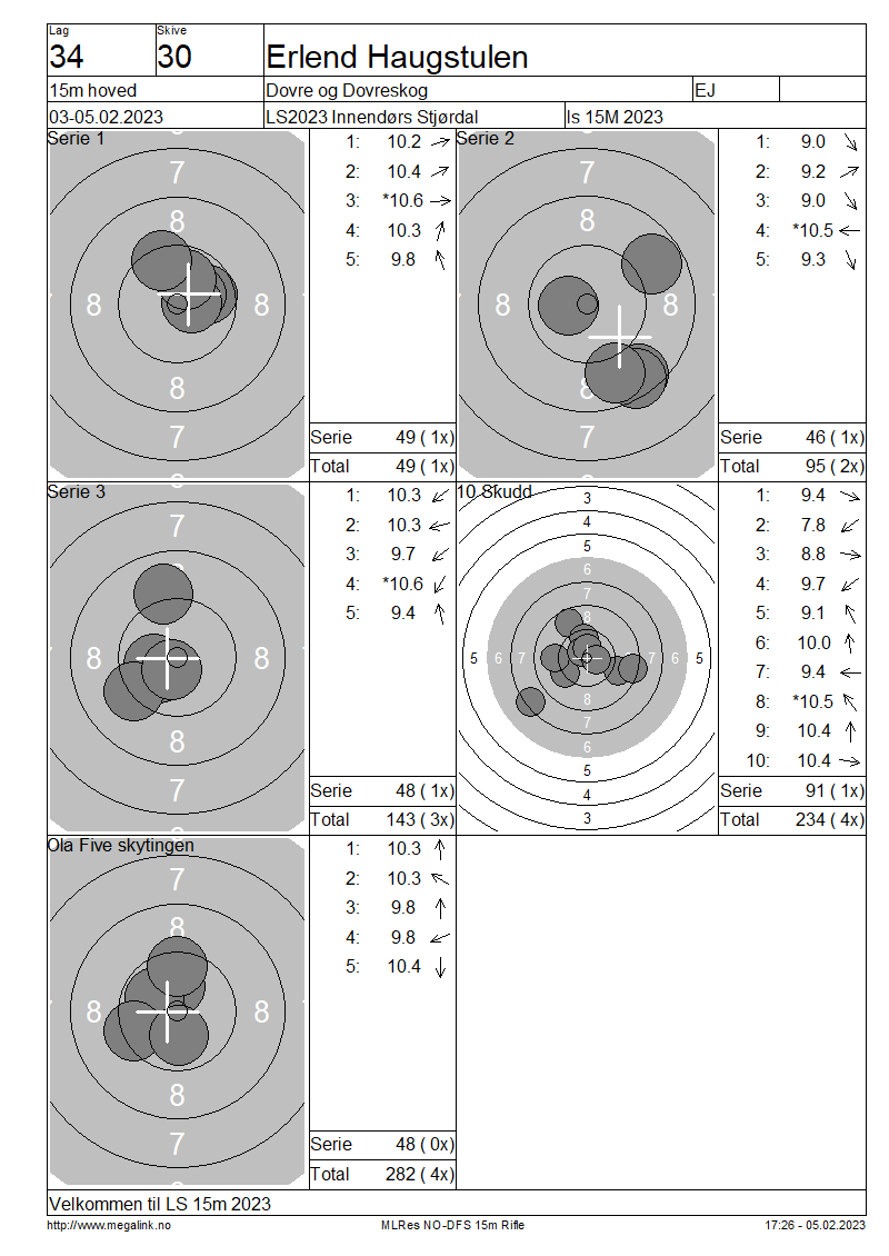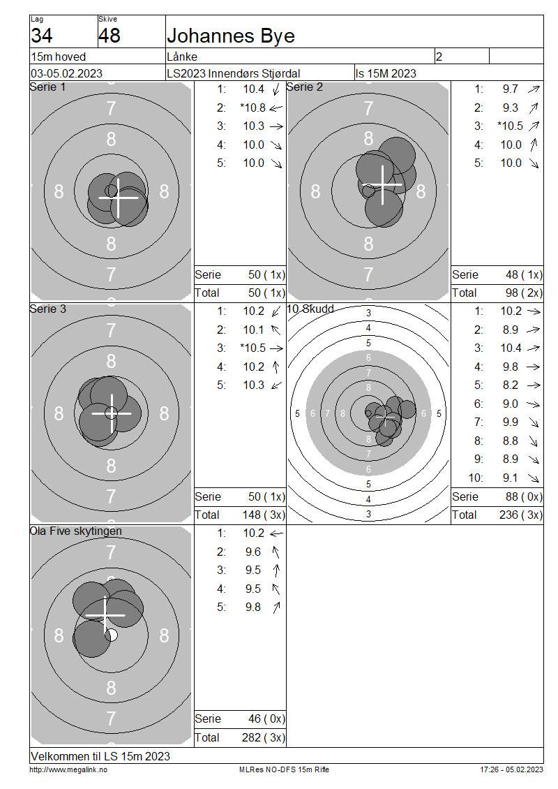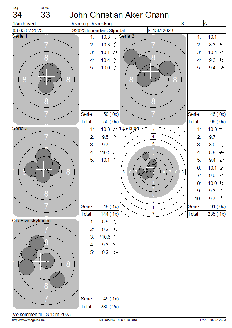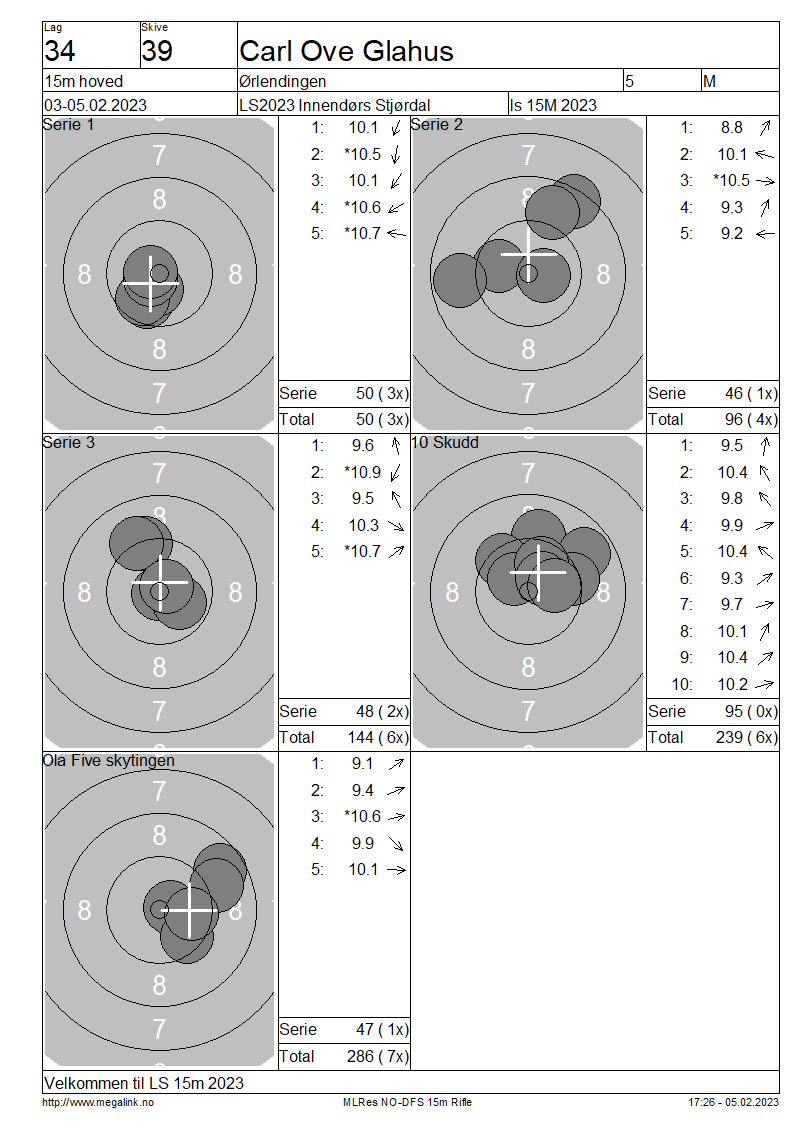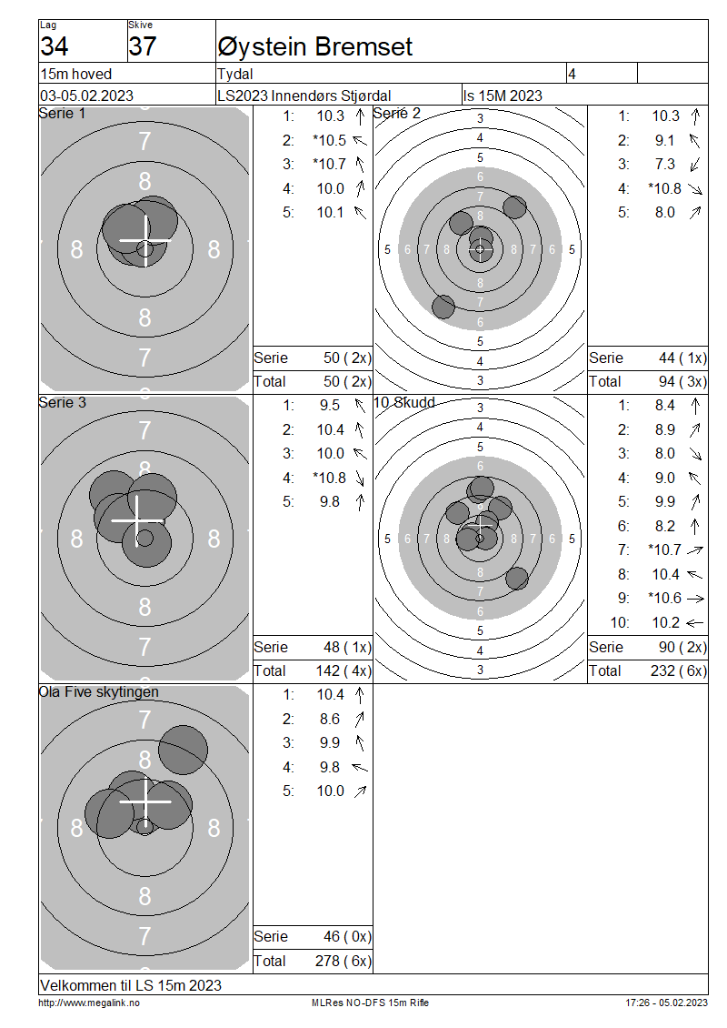 Resultater lag 34 15m hoved
