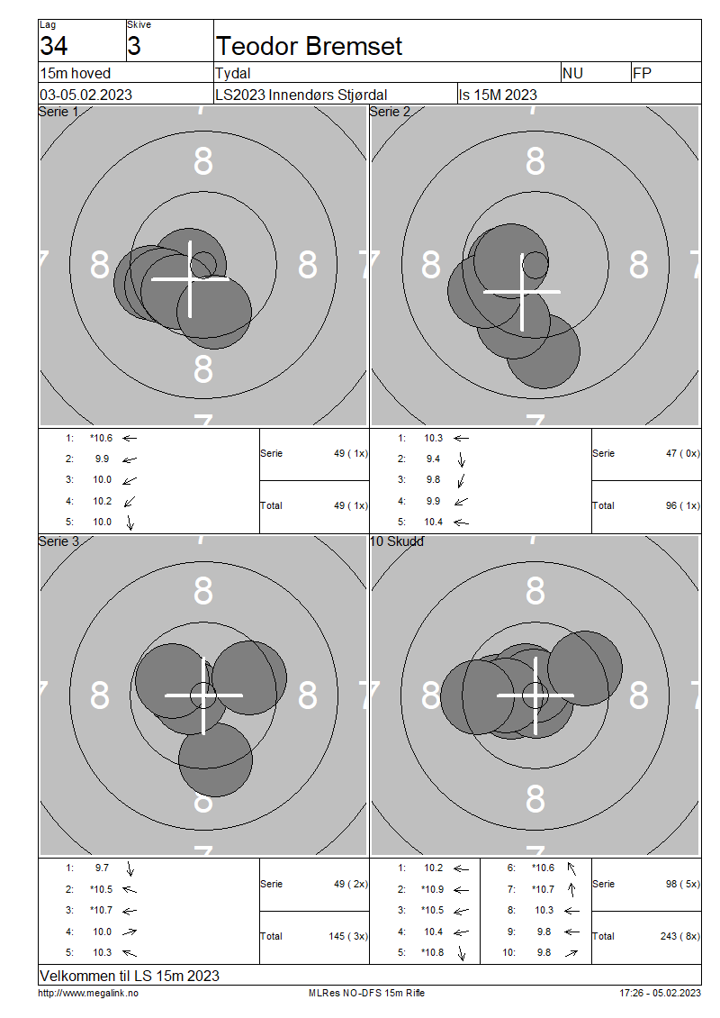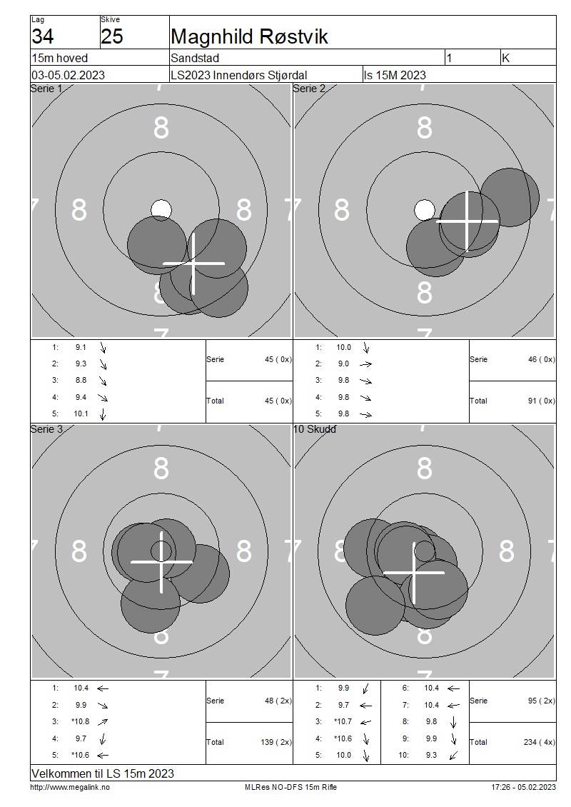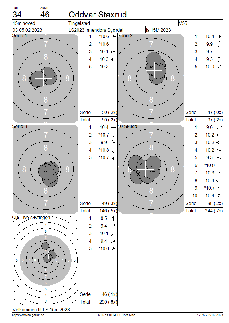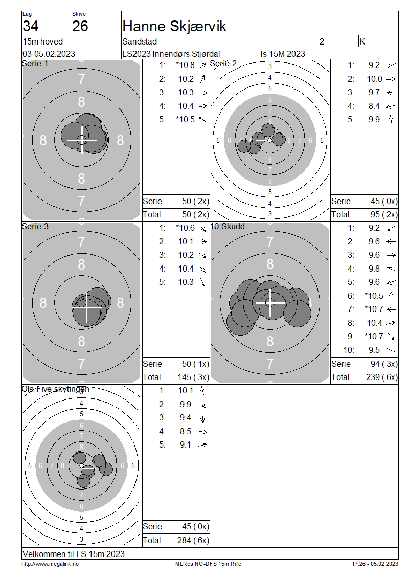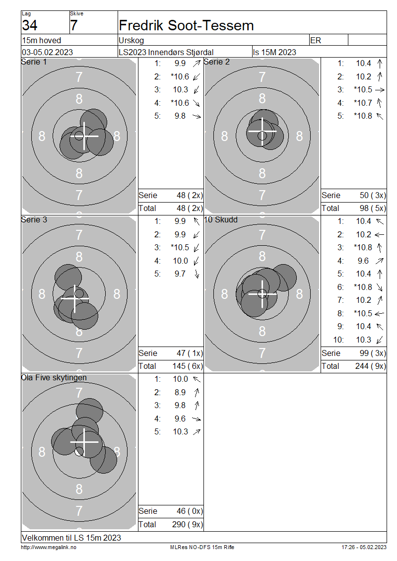 Resultater lag 34 15m hoved