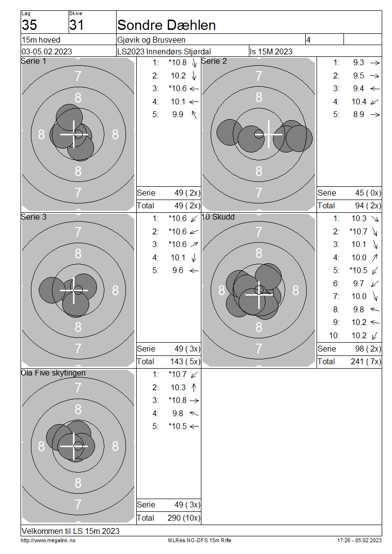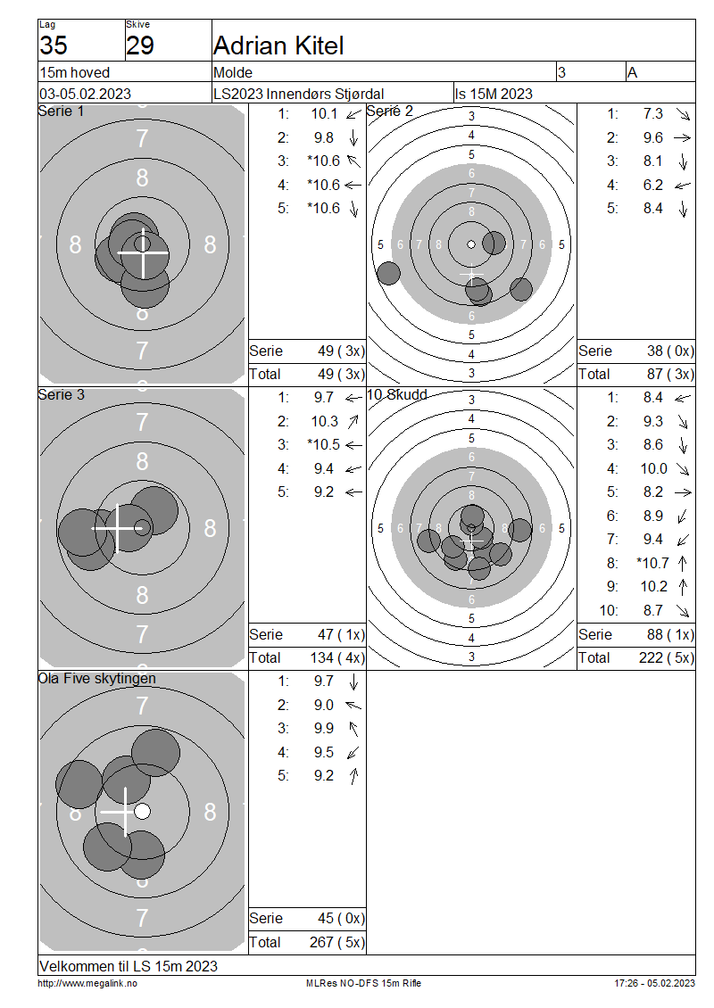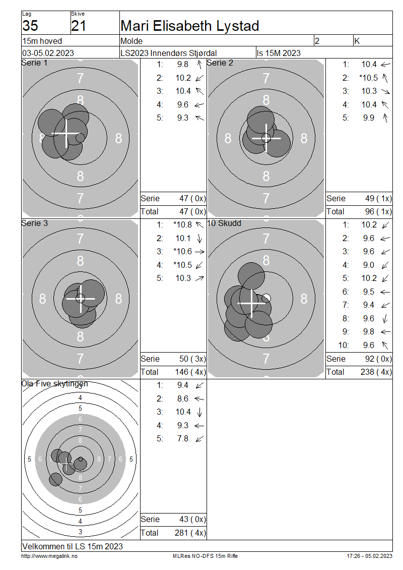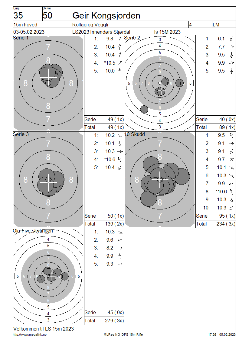 Resultater lag 35 15m hoved