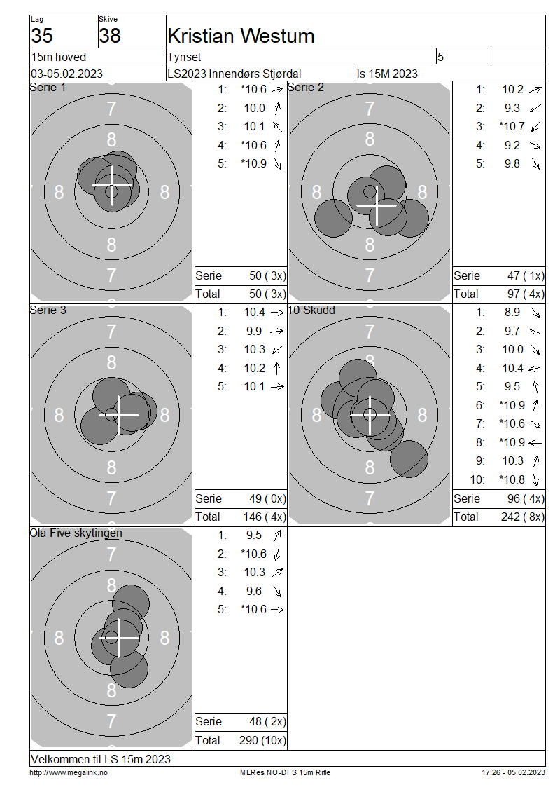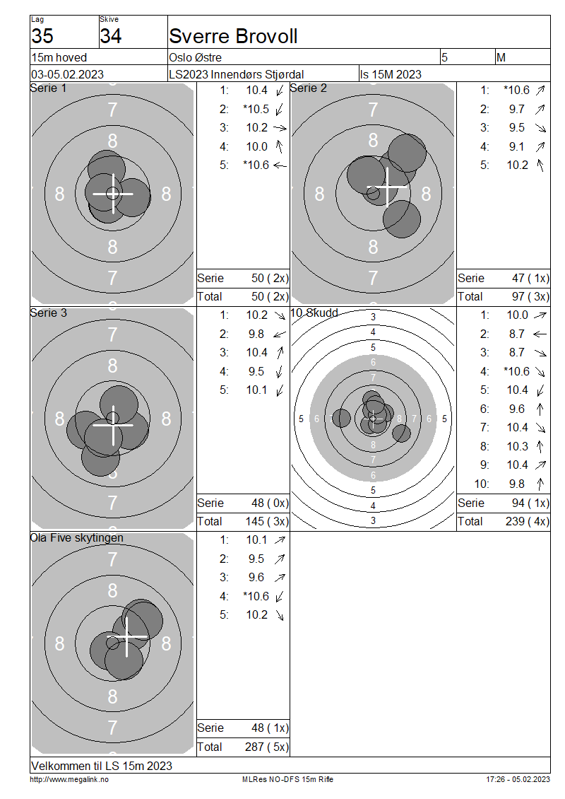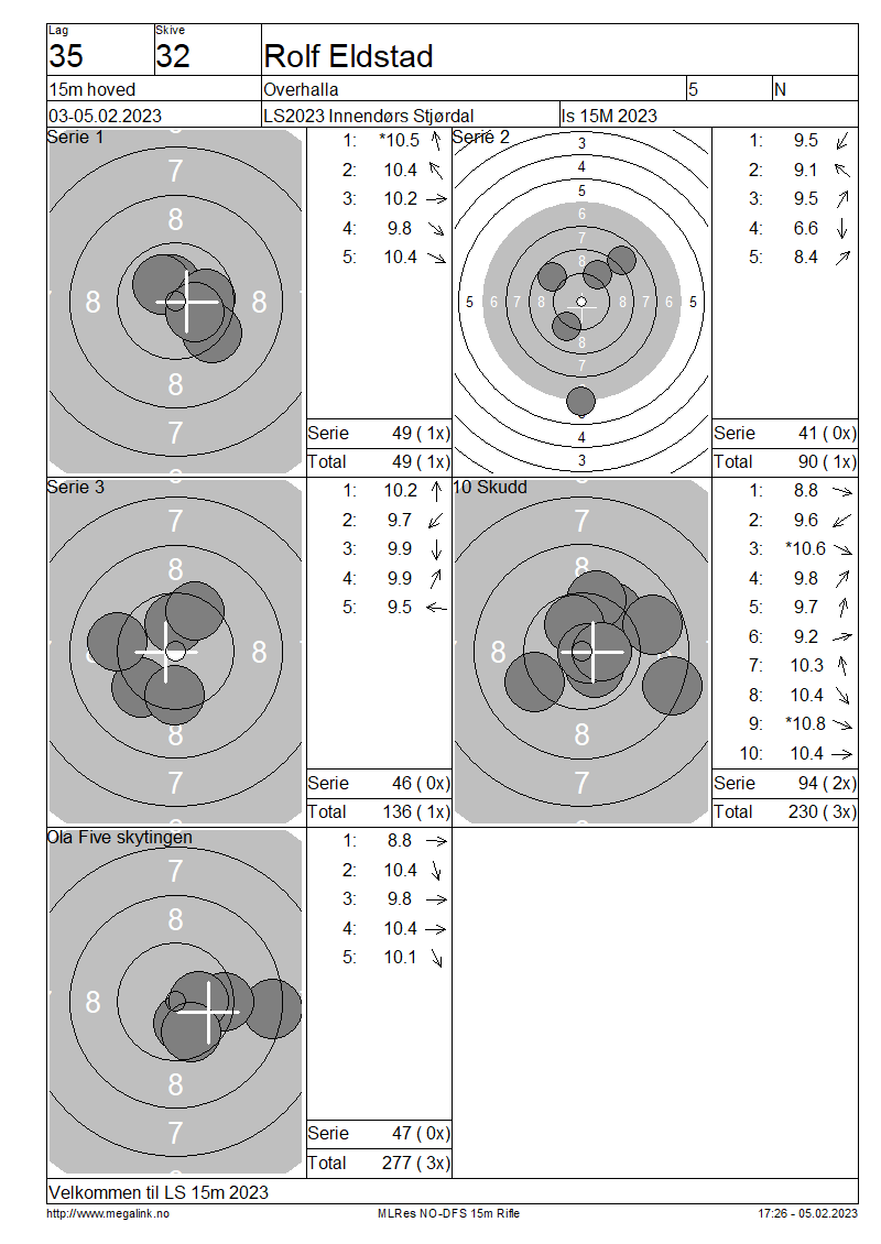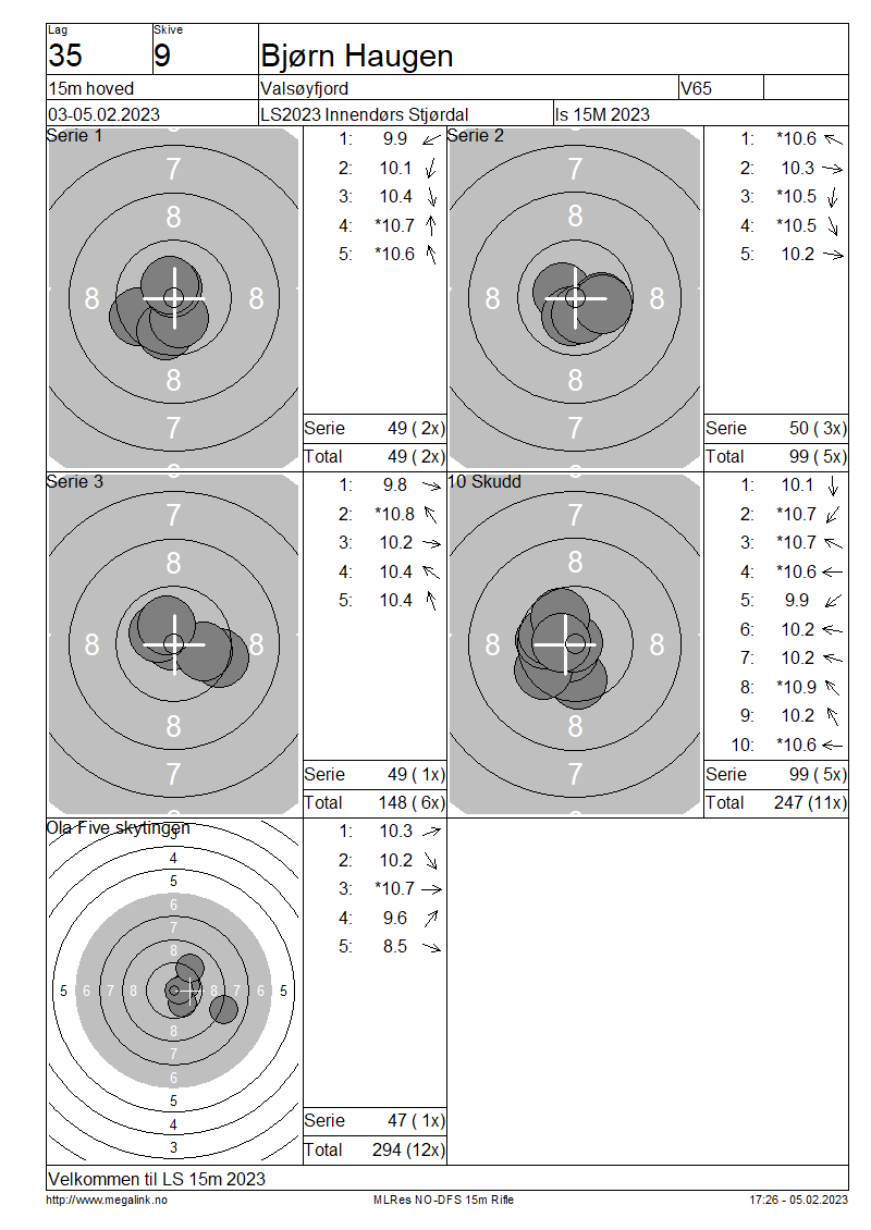 Resultater lag 35 15m hoved