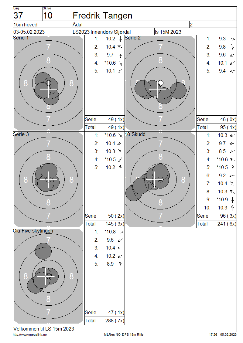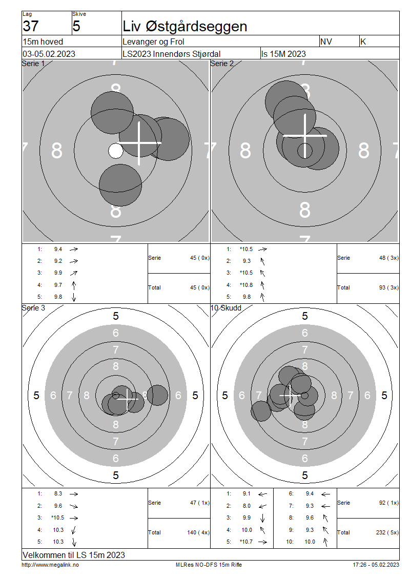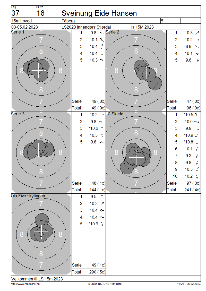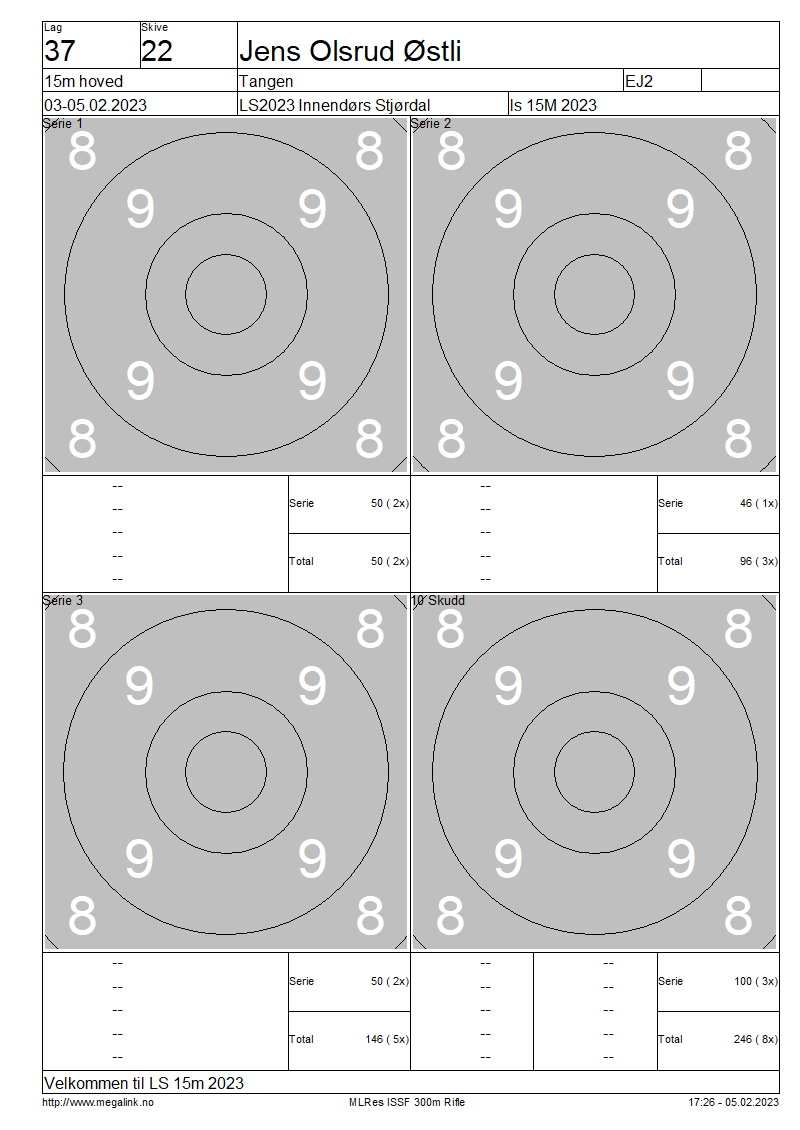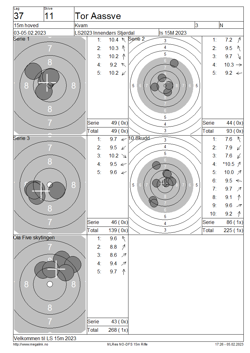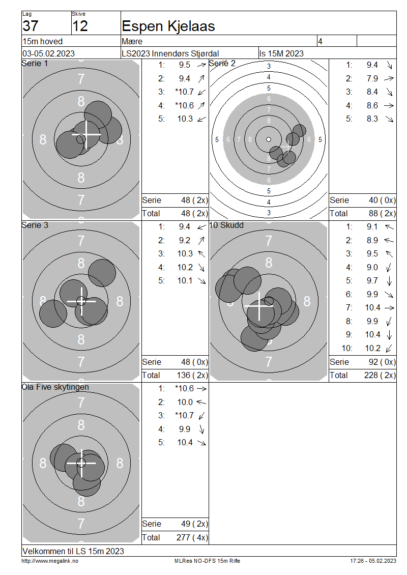 Resultater lag 37 15m hoved