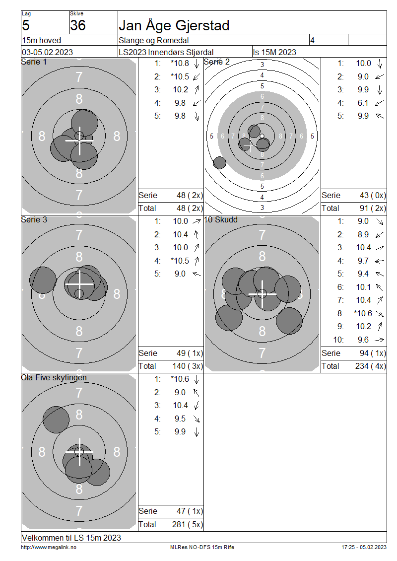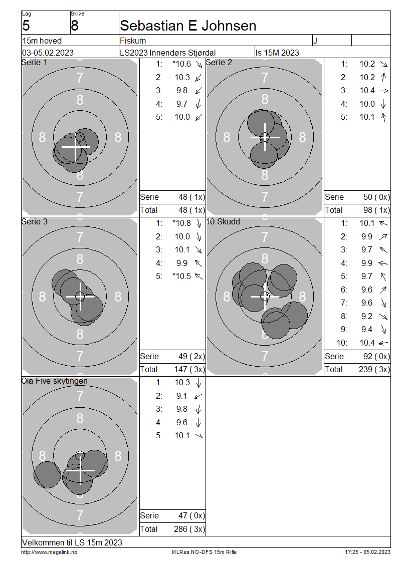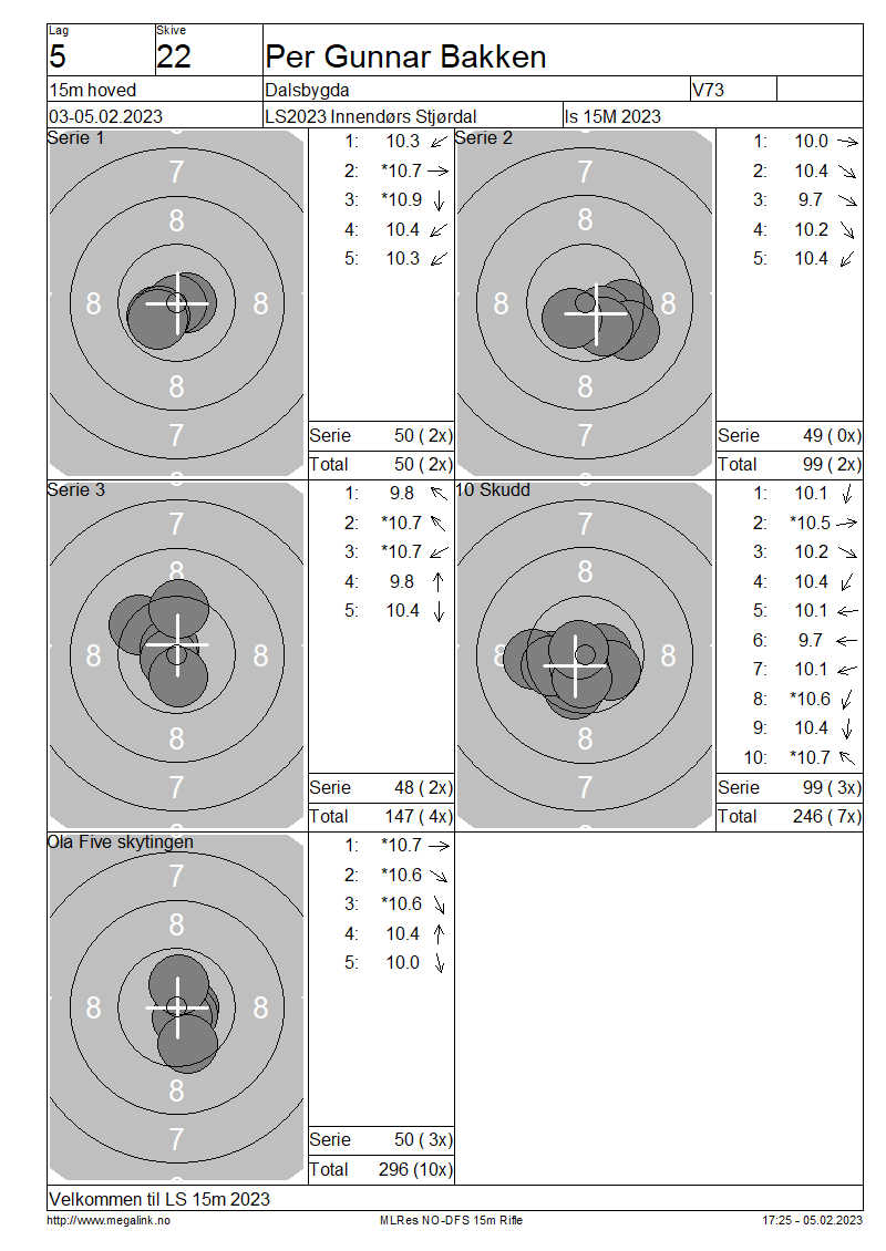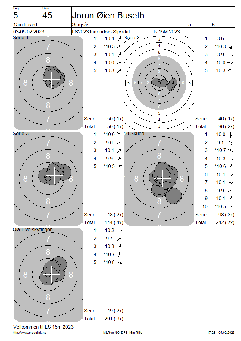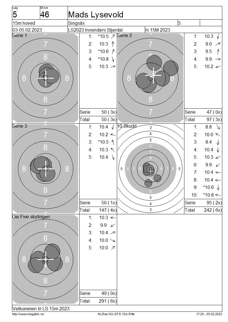 Resultater lag 5 15m hoved