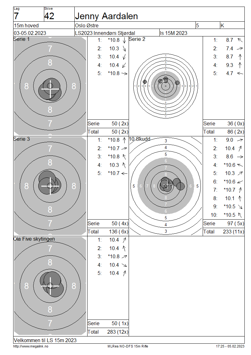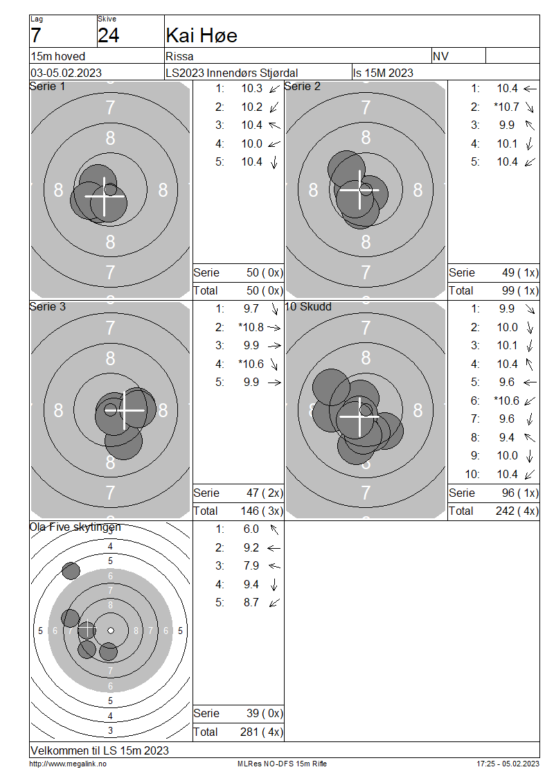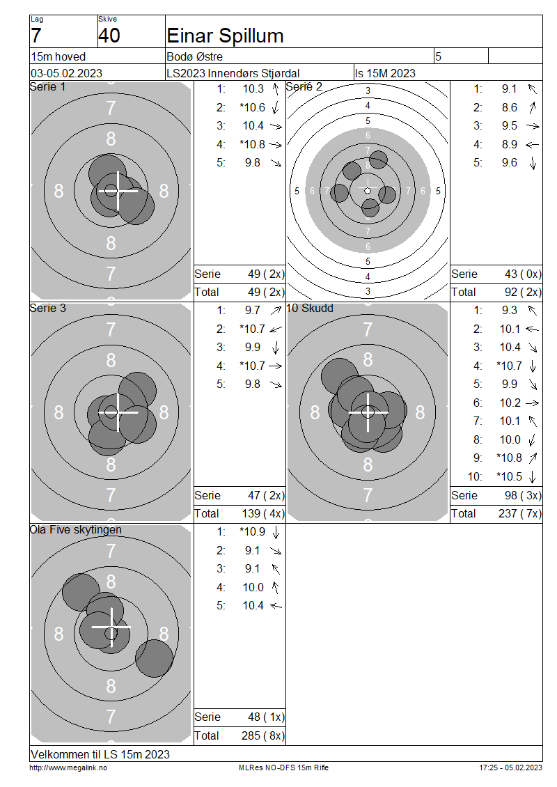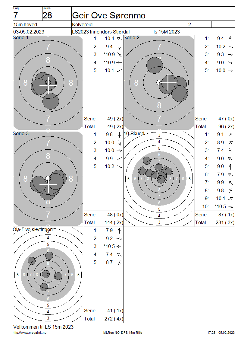 Resultater lag 7 15m hoved