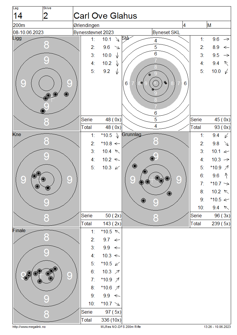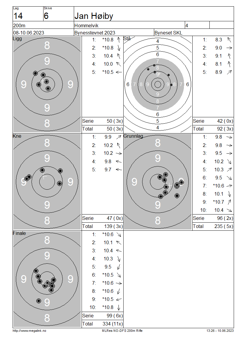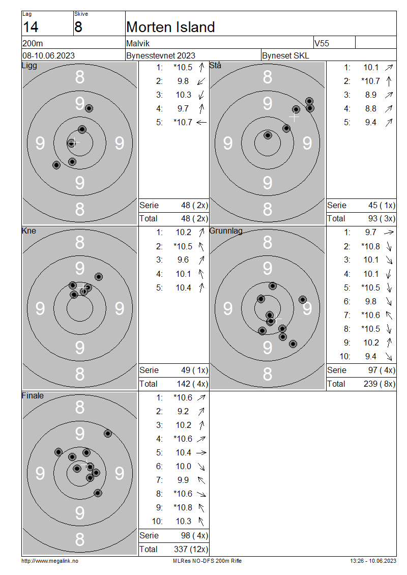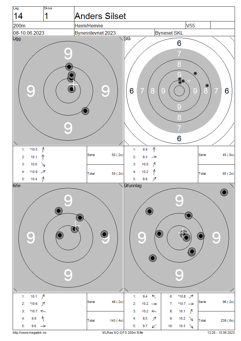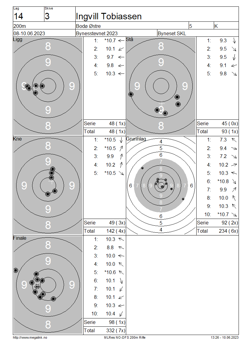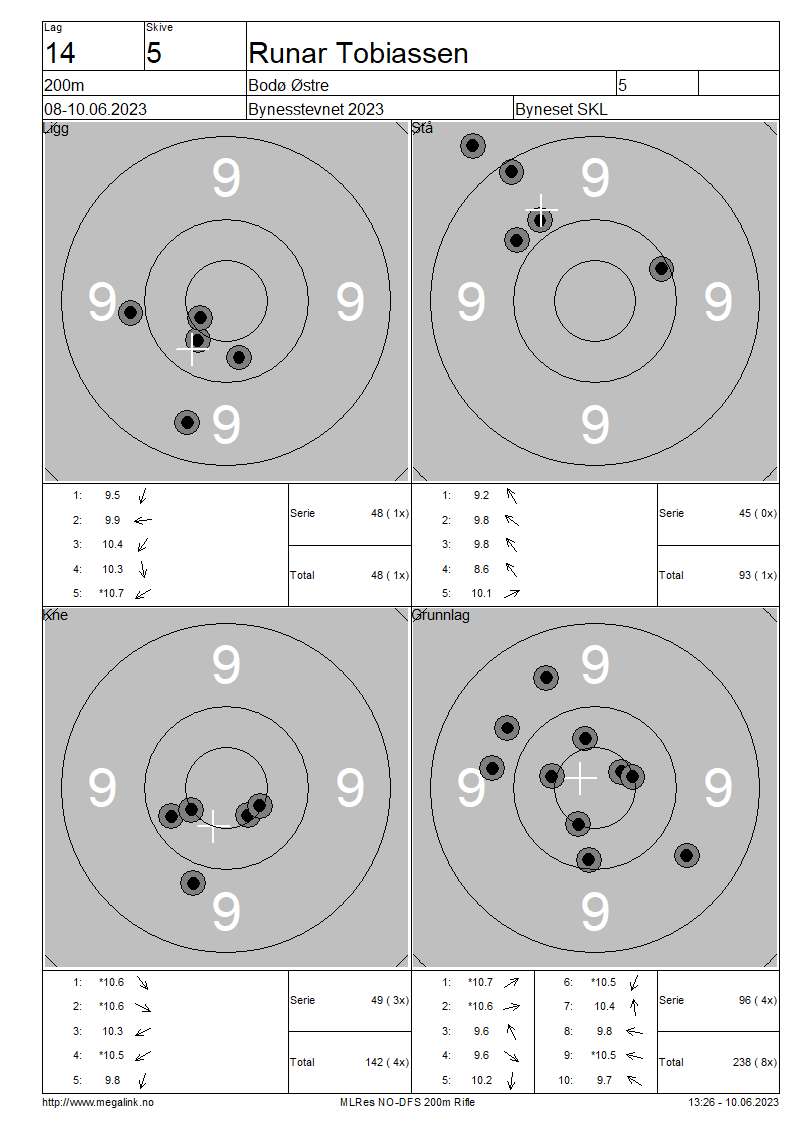 Resultater lag 14 200m