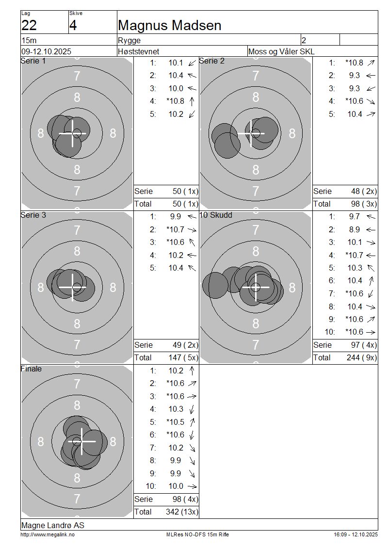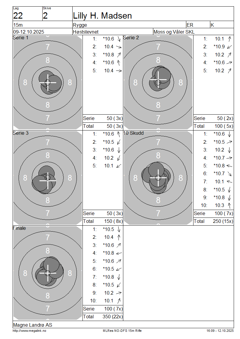 Resultater lag 22 15m