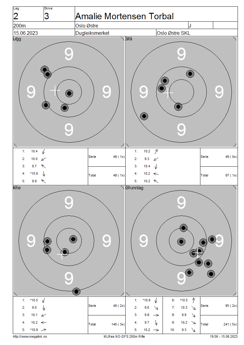 Resultater lag 2 200m