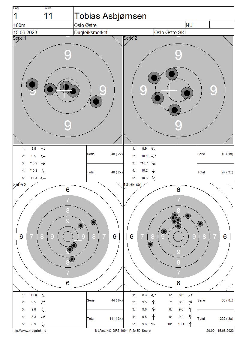 | 15 Skudd | 141 | 25 Skudd | 229 | 35 Skudd | 229 | ||||||||||||||||||||||||||||||||||||||||||