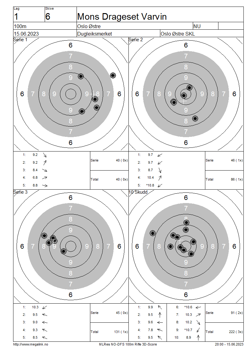 | 15 Skudd | 131 | 25 Skudd | 222 | 35 Skudd | 222 | ||||||||||||||||||||||||||||||||||||||||||