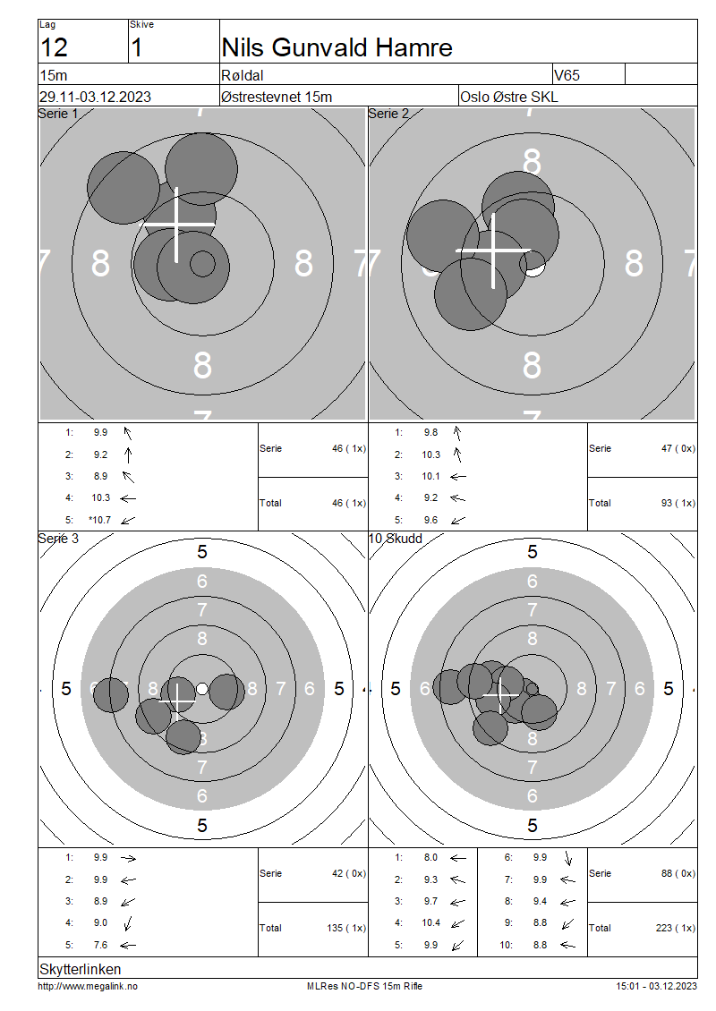 | 15 Skudd | 135 | 25 Skudd | 223 | 35 Skudd | 223 | ||||||||||||||||||||||||||||||||||||||||||
