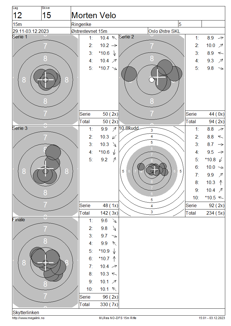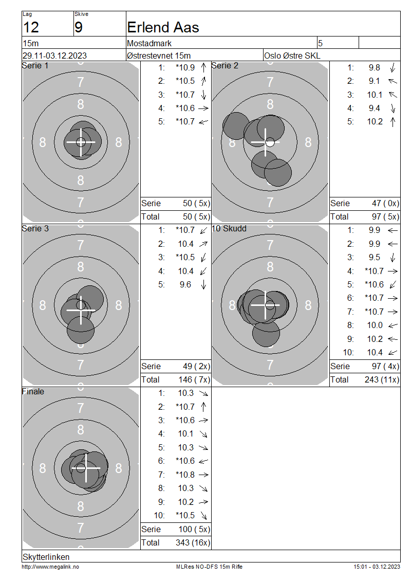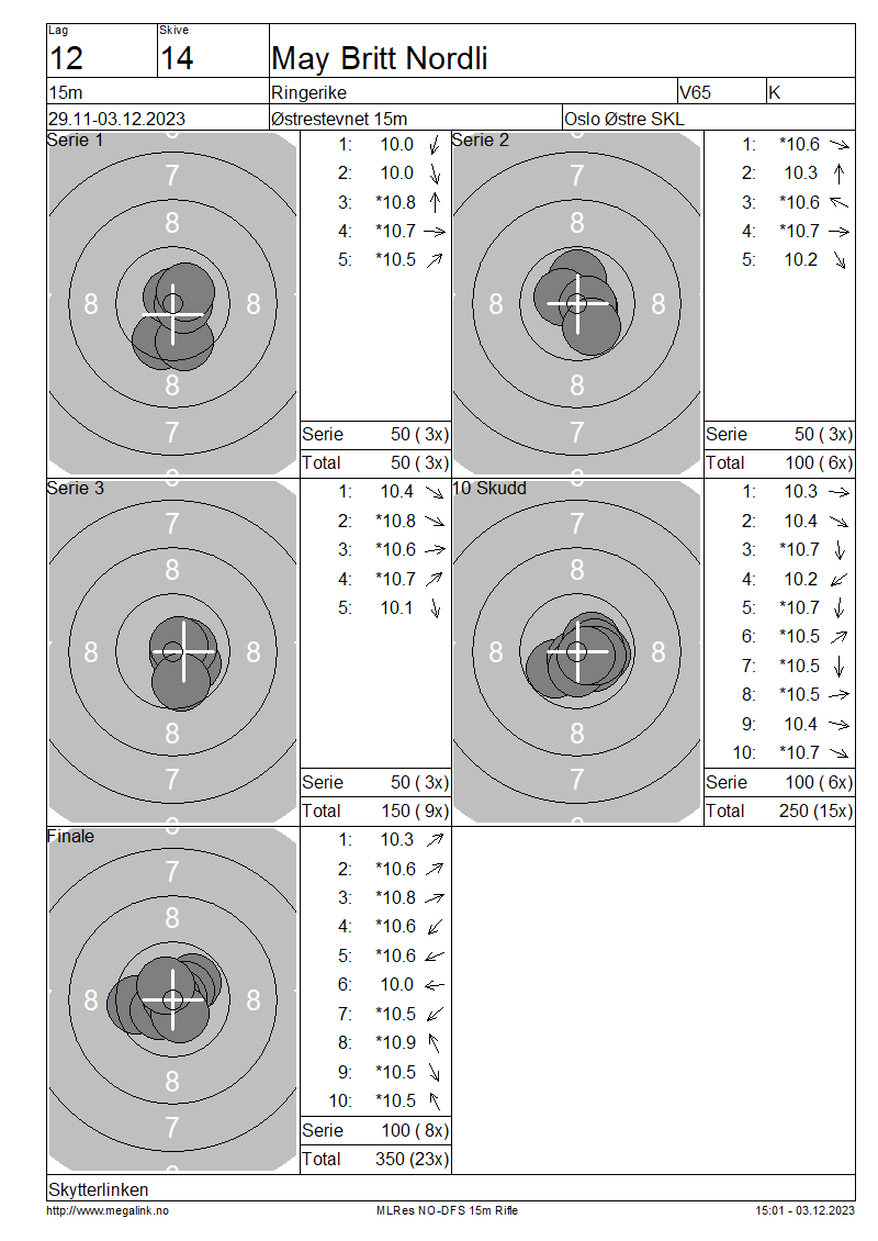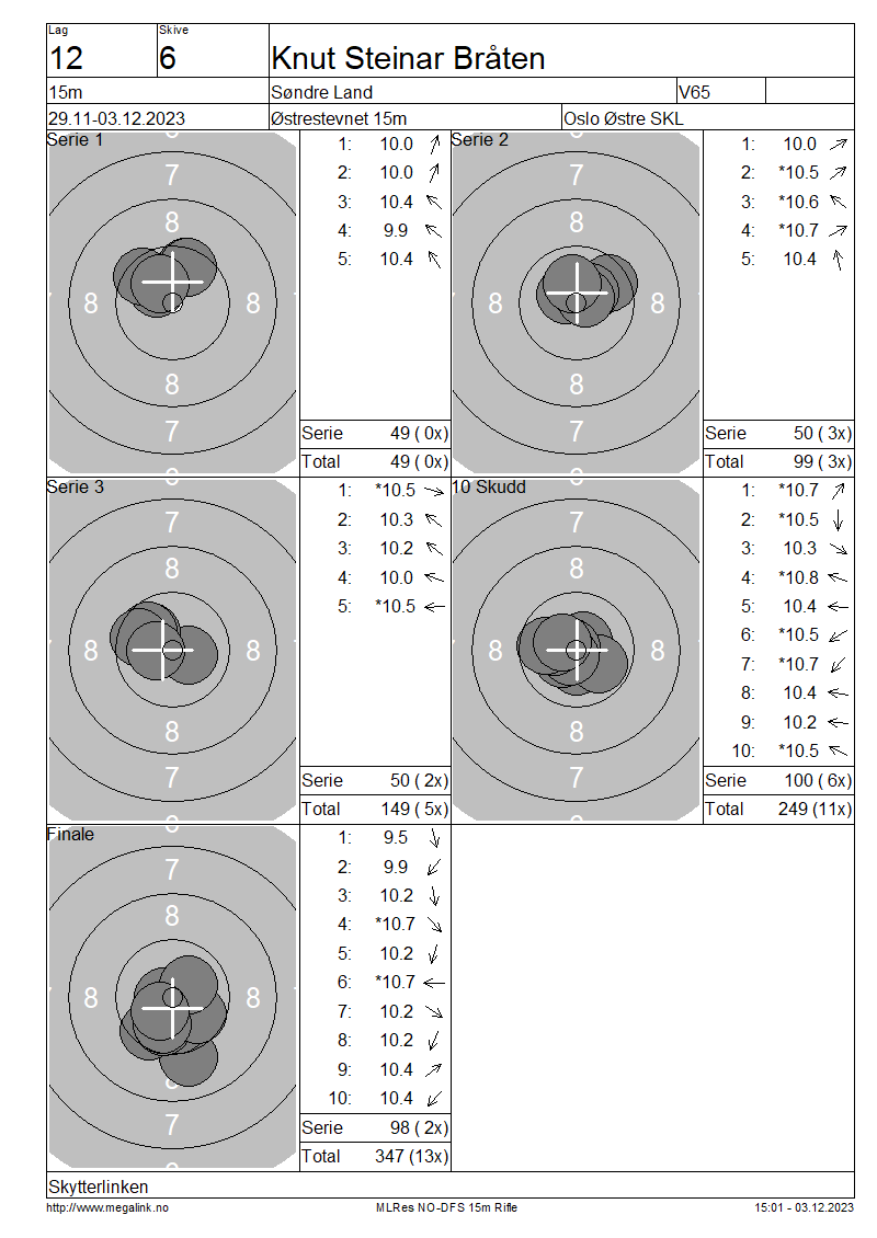 | 15 Skudd | 149 | 25 Skudd | 249 | 35 Skudd | 347 | ||||||||||||||||||||||||||||||||||||||||||