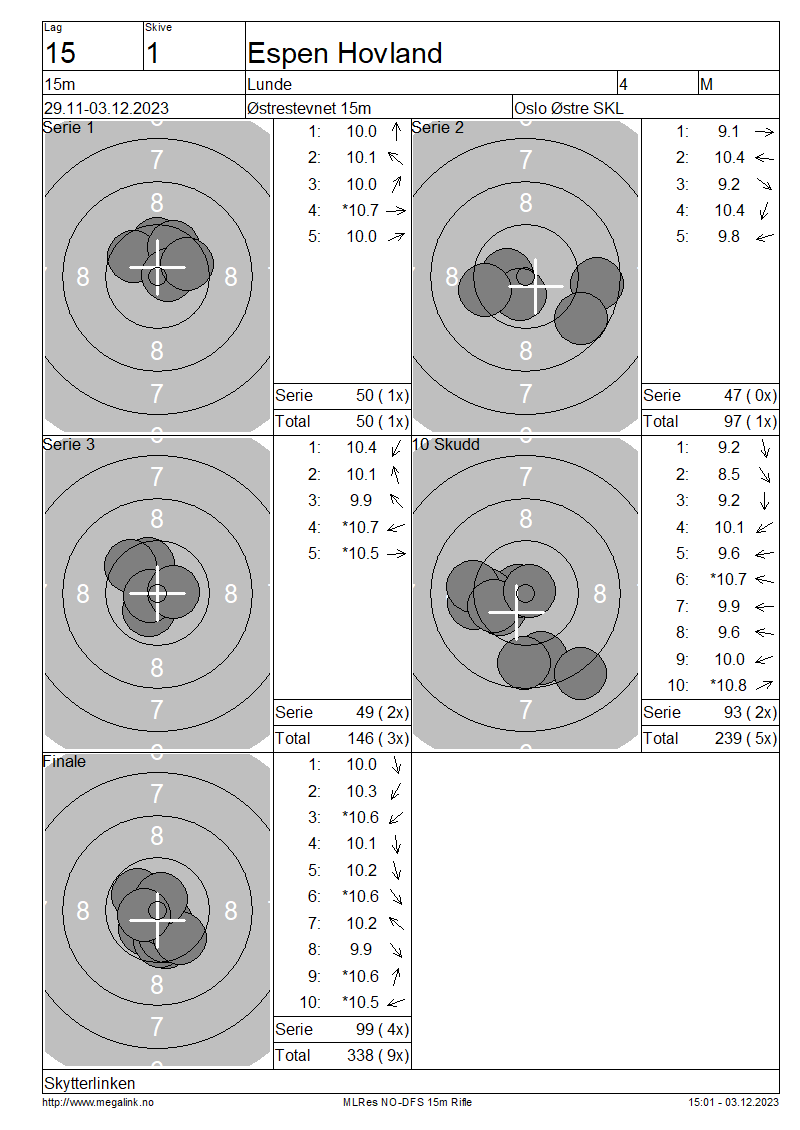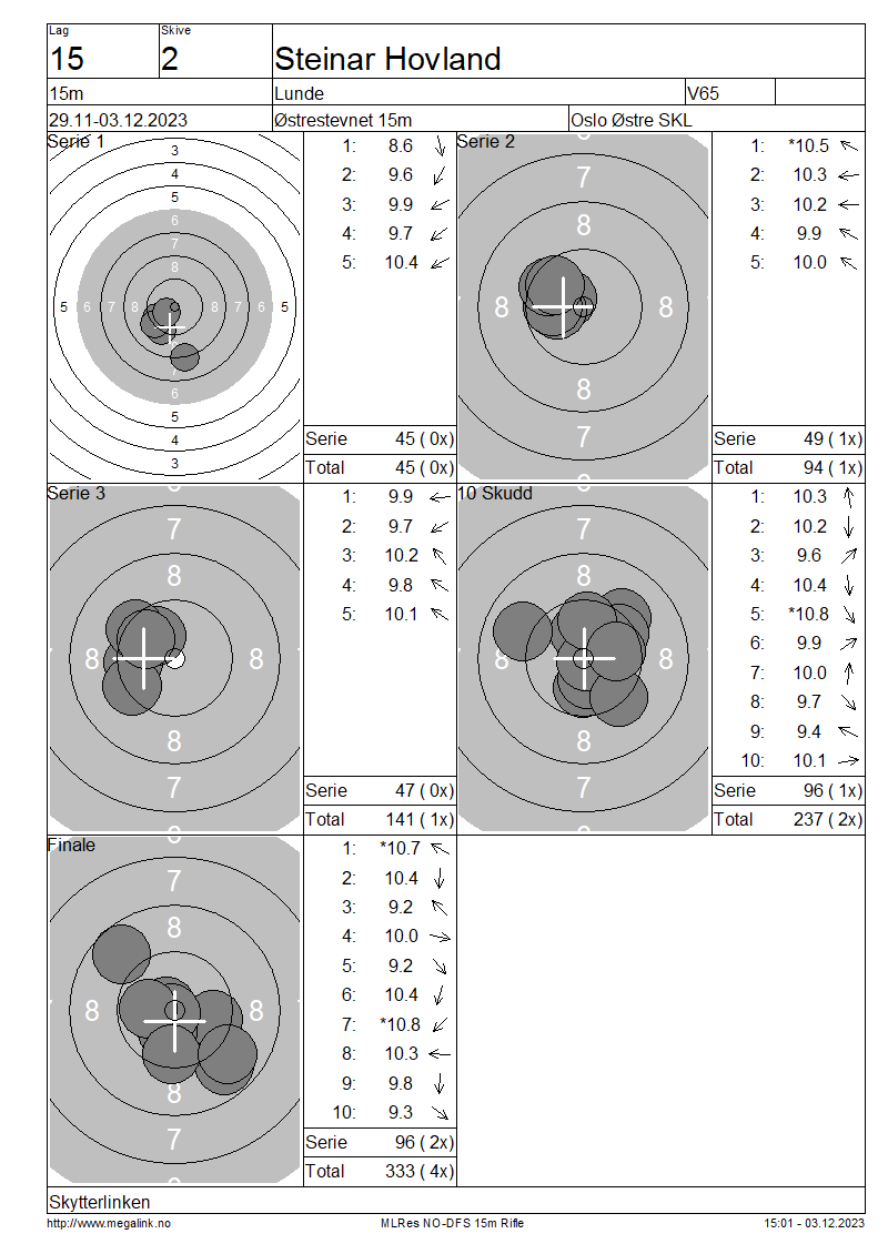| 15 Skudd | 145 | 25 Skudd | 240 | 35 Skudd | 333 | ||||||||||||||||||||||||||||||||||||||||||