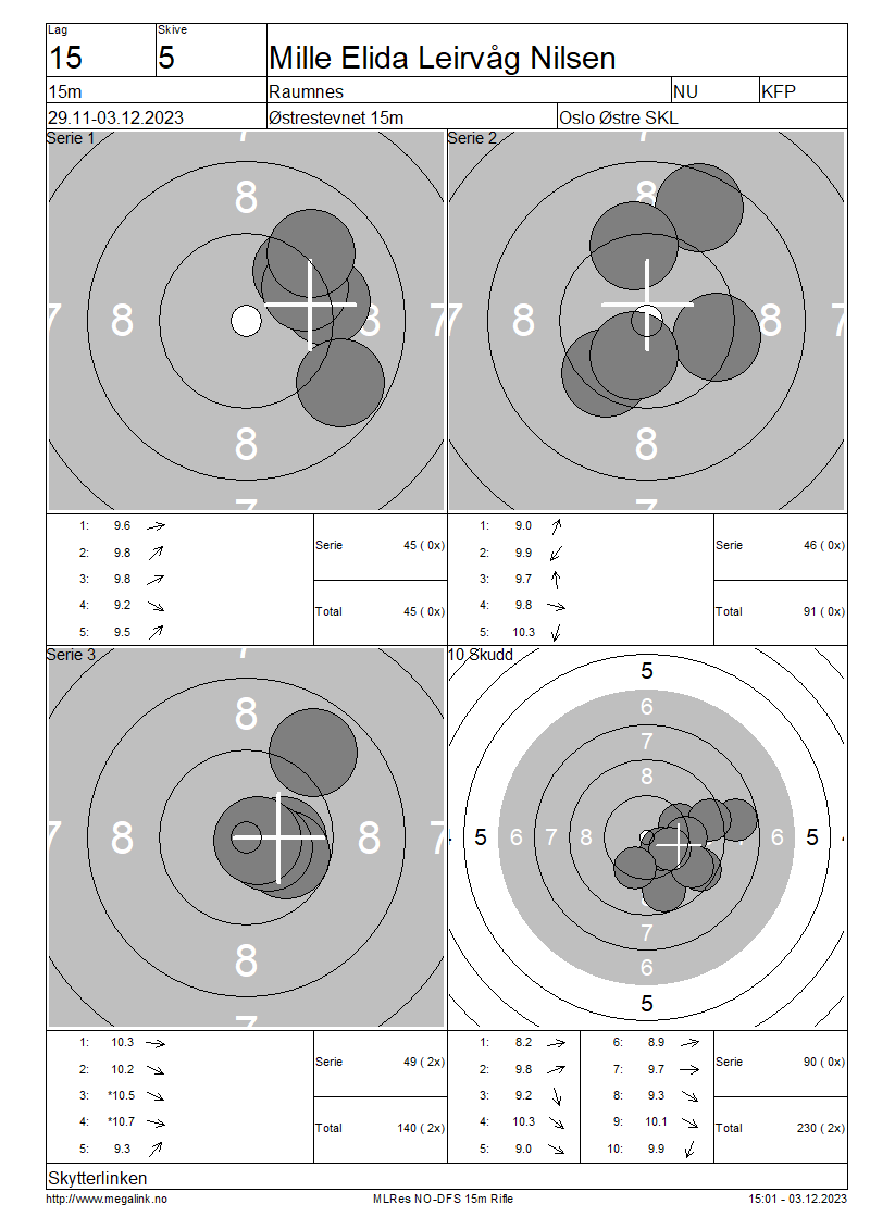 | 15 Skudd | 140 | 25 Skudd | 230 | 35 Skudd | 230 | ||||||||||||||||||||||||||||||||||||||||||