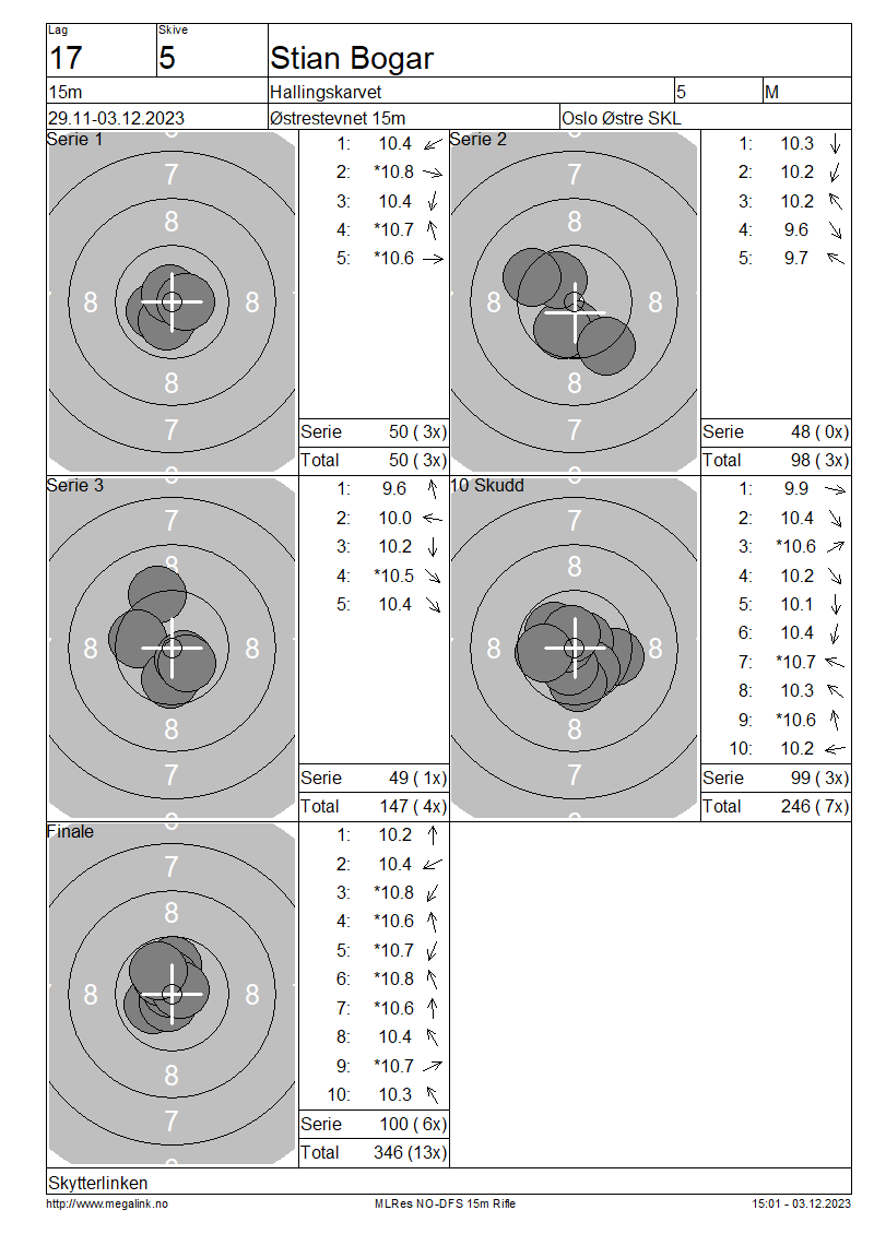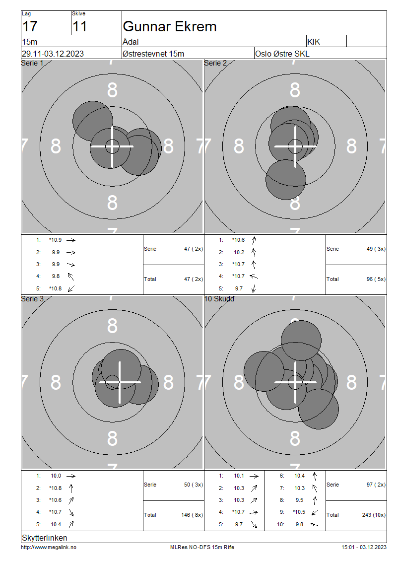 | 15 Skudd | 147 | 25 Skudd | 247 | 35 Skudd | 345 | ||||||||||||||||||||||||||||||||||||||||||
