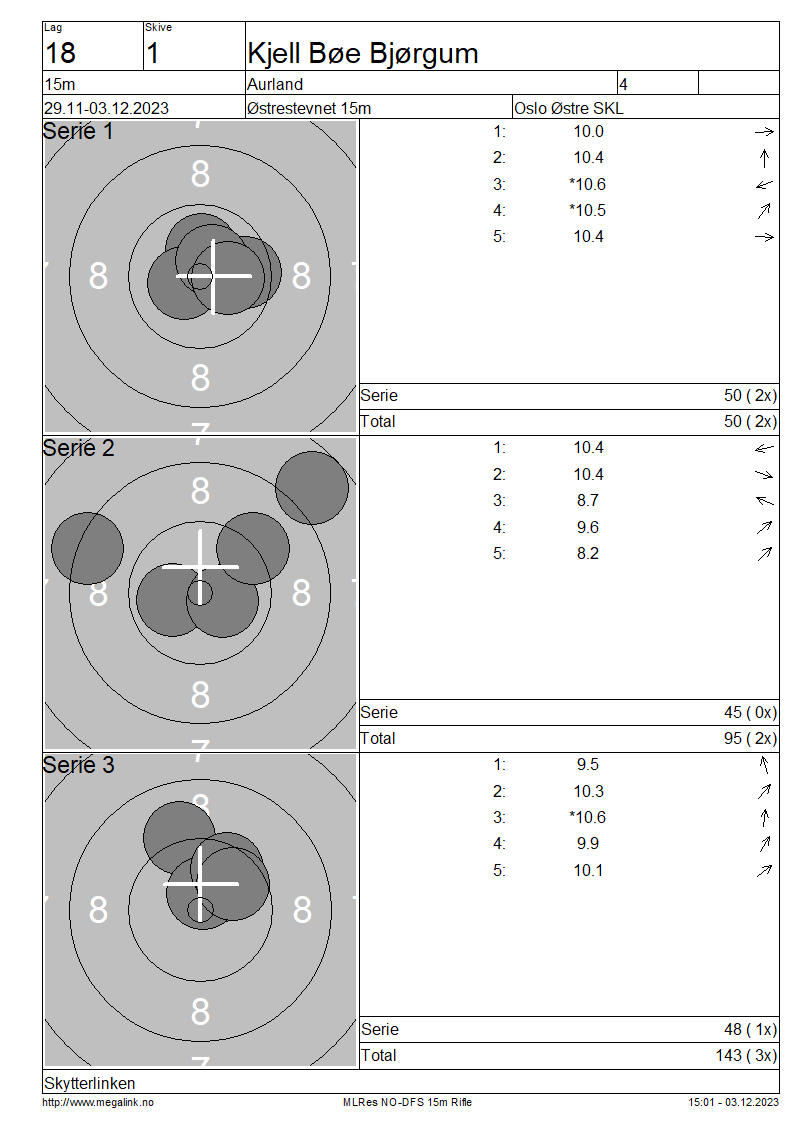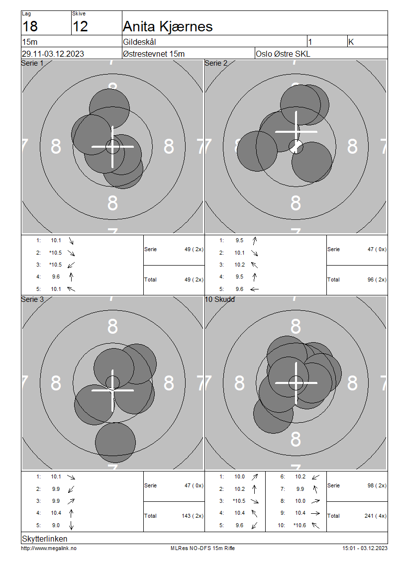 | 15 Skudd | 143 | 25 Skudd | 241 | 35 Skudd | 241 | ||||||||||||||||||||||||||||||||||||||||||