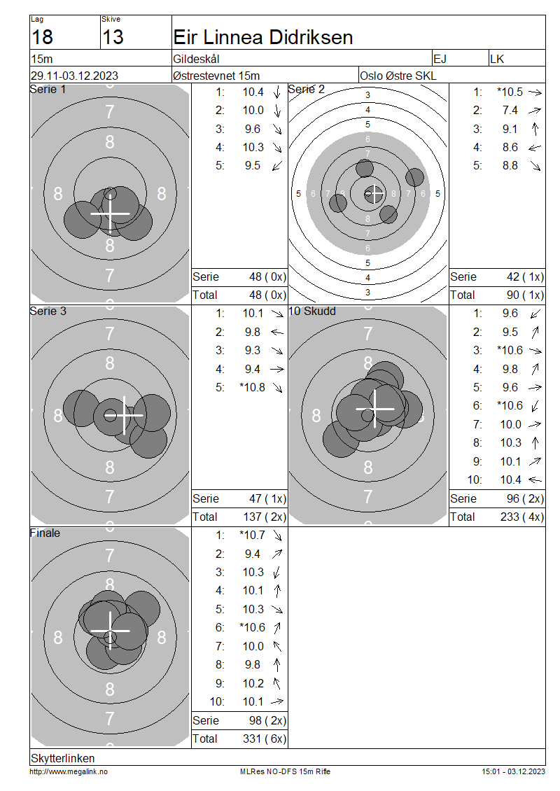 | 15 Skudd | 137 | 25 Skudd | 233 | 35 Skudd | 331 | ||||||||||||||||||||||||||||||||||||||||||
