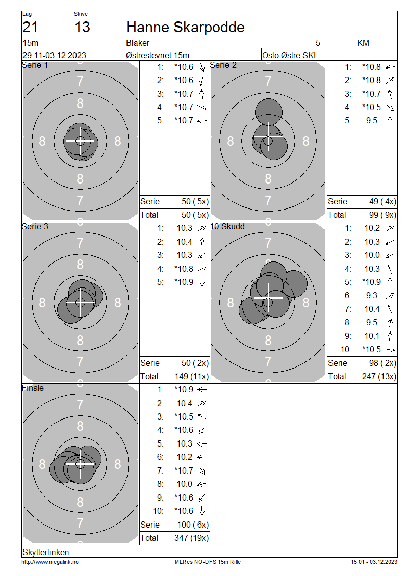 | 15 Skudd | 149 | 25 Skudd | 247 | 35 Skudd | 347 | ||||||||||||||||||||||||||||||||||||||||||