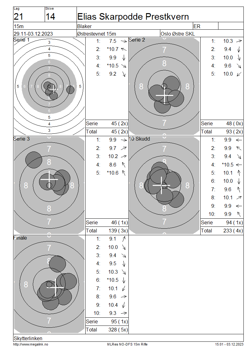 | 15 Skudd | 139 | 25 Skudd | 233 | 35 Skudd | 328 | ||||||||||||||||||||||||||||||||||||||||||