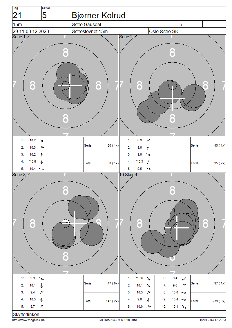 | 15 Skudd | 142 | 25 Skudd | 239 | 35 Skudd | 239 | ||||||||||||||||||||||||||||||||||||||||||