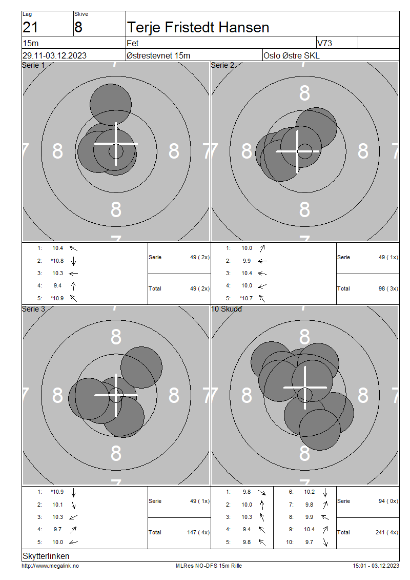 | 15 Skudd | 147 | 25 Skudd | 241 | 35 Skudd | 241 | ||||||||||||||||||||||||||||||||||||||||||