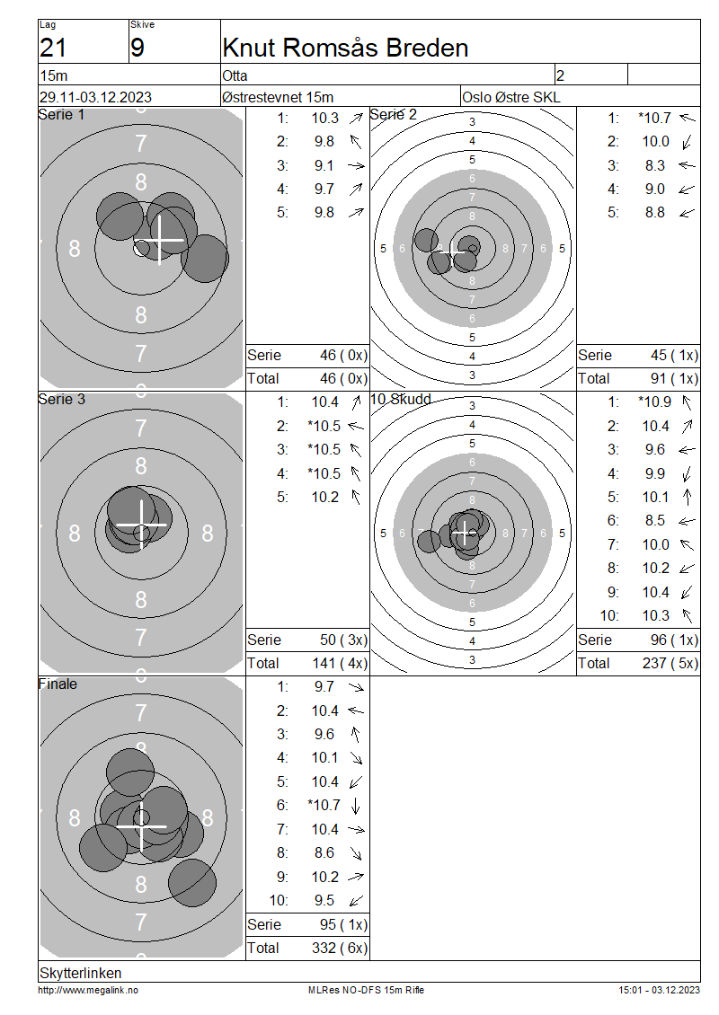 | 15 Skudd | 141 | 25 Skudd | 237 | 35 Skudd | 332 | ||||||||||||||||||||||||||||||||||||||||||