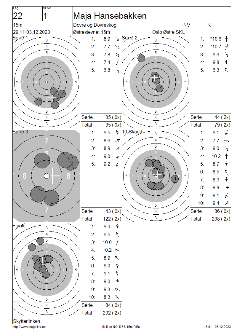 | 15 Skudd | 122 | 25 Skudd | 208 | 35 Skudd | 292 | ||||||||||||||||||||||||||||||||||||||||||