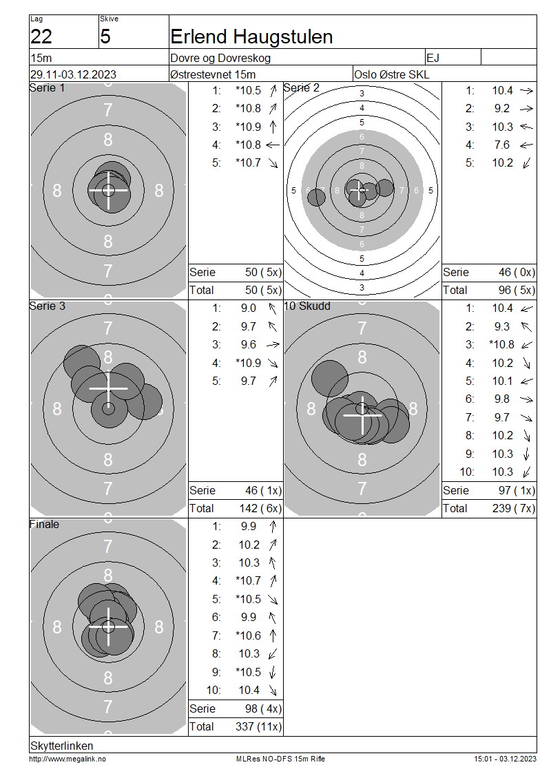 | 15 Skudd | 145 | 25 Skudd | 239 | 35 Skudd | 333 | ||||||||||||||||||||||||||||||||||||||||||