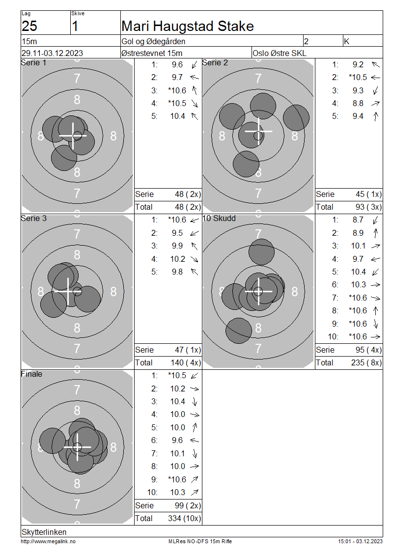 | 15 Skudd | 140 | 25 Skudd | 235 | 35 Skudd | 334 | ||||||||||||||||||||||||||||||||||||||||||