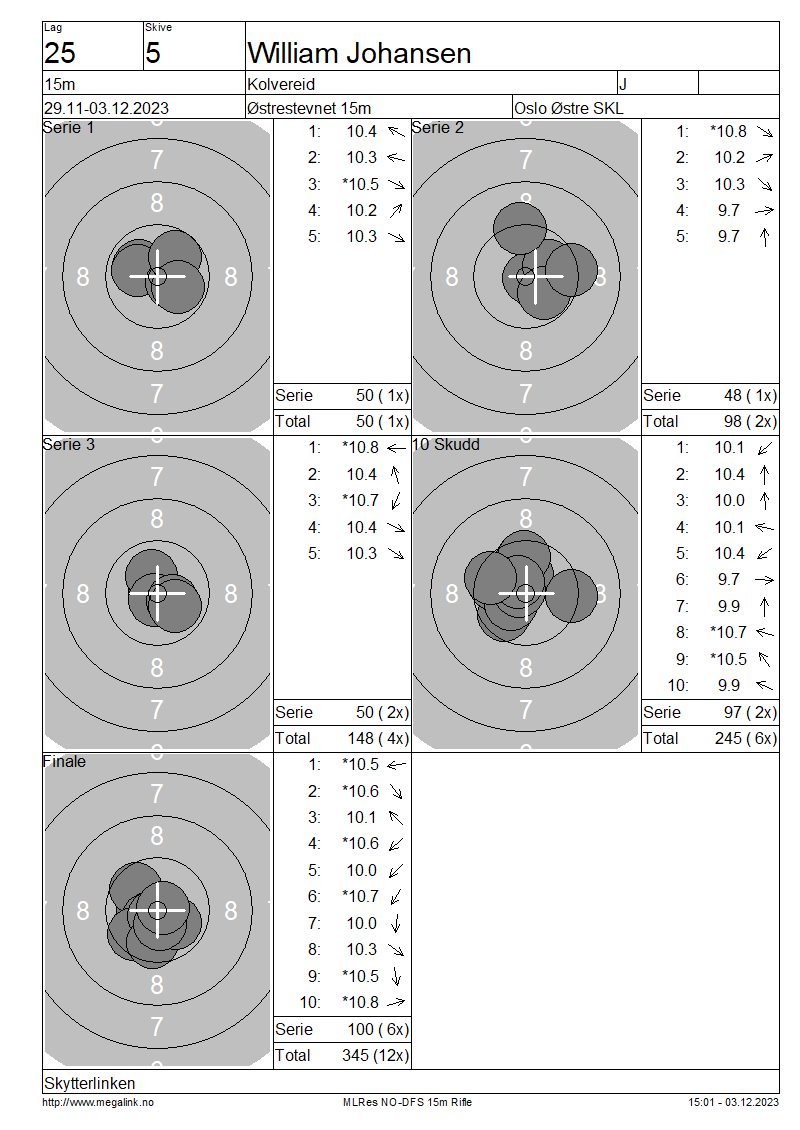 | 15 Skudd | 148 | 25 Skudd | 245 | 35 Skudd | 345 | ||||||||||||||||||||||||||||||||||||||||||