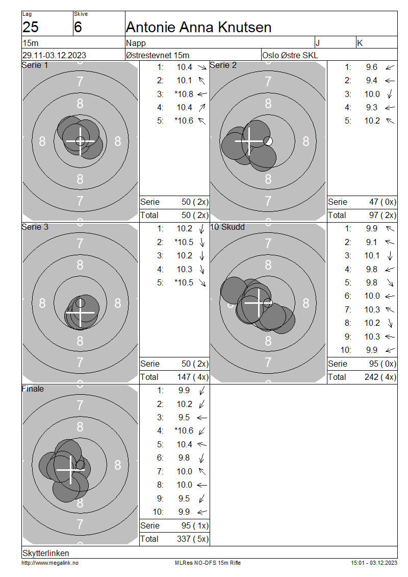 | 15 Skudd | 147 | 25 Skudd | 242 | 35 Skudd | 337 | ||||||||||||||||||||||||||||||||||||||||||