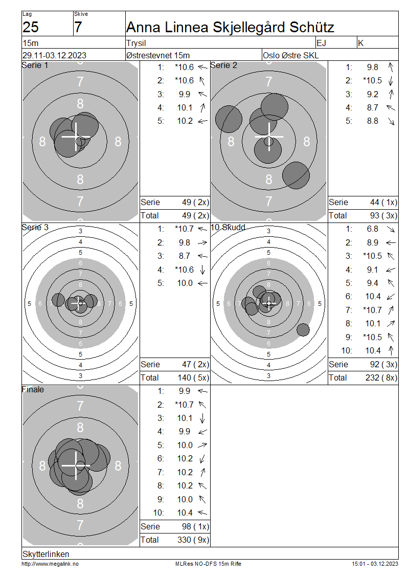 | 15 Skudd | 140 | 25 Skudd | 232 | 35 Skudd | 330 | ||||||||||||||||||||||||||||||||||||||||||