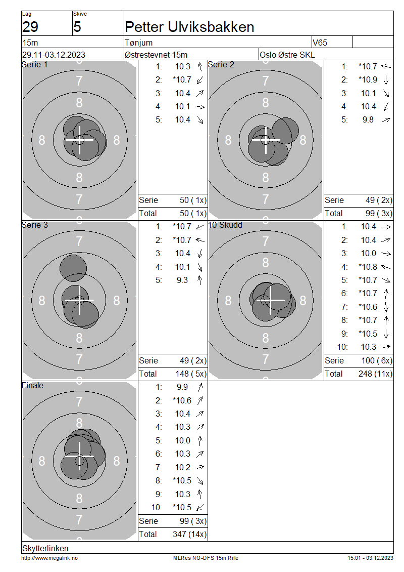 | 15 Skudd | 148 | 25 Skudd | 248 | 35 Skudd | 347 | ||||||||||||||||||||||||||||||||||||||||||