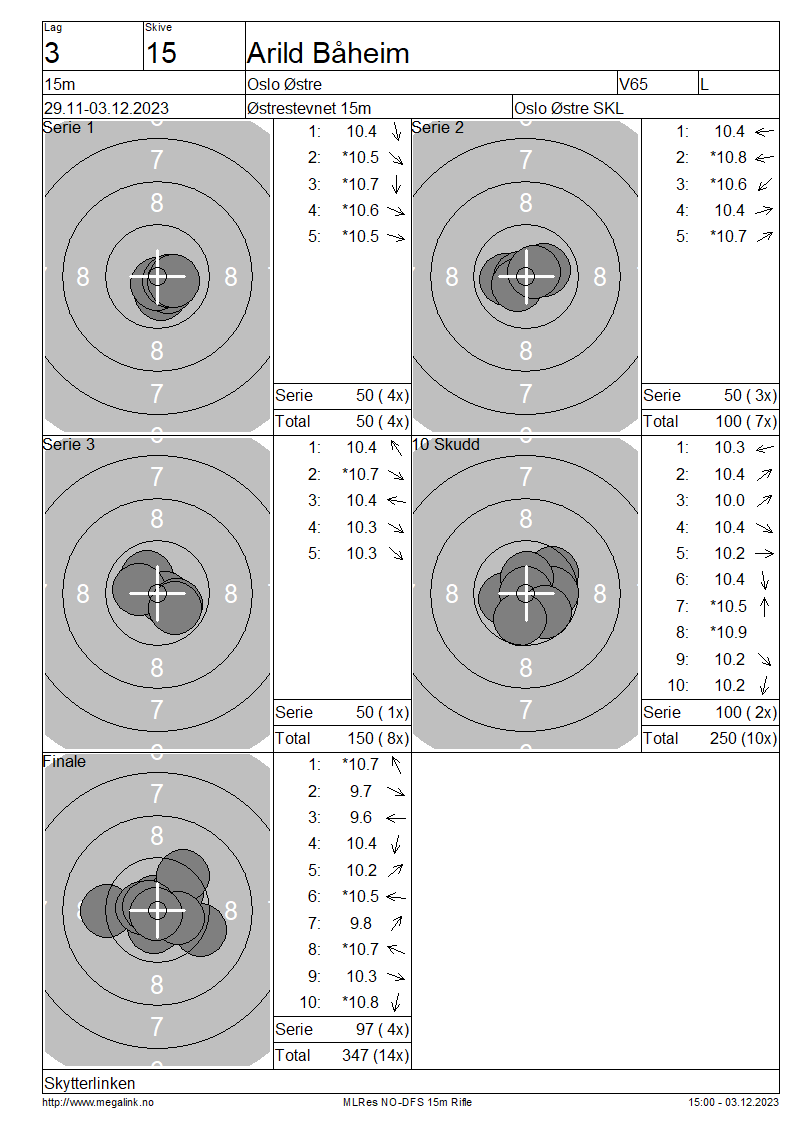 Resultater lag 3 15m