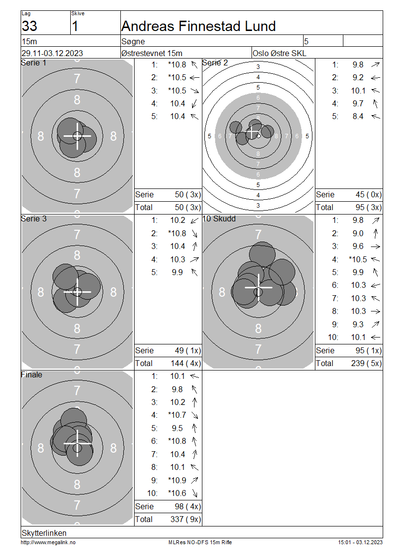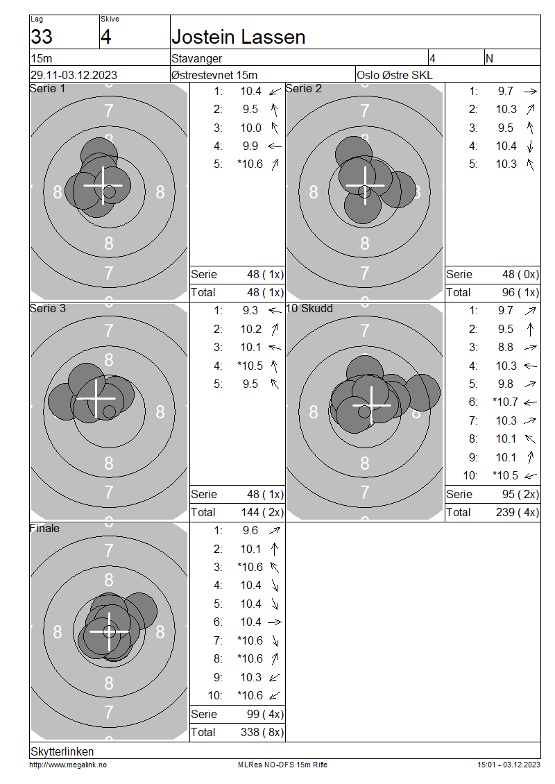 | 15 Skudd | 149 | 25 Skudd | 245 | 35 Skudd | 345 | ||||||||||||||||||||||||||||||||||||||||||