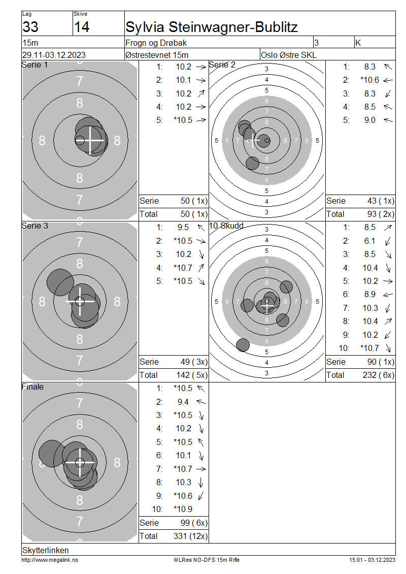 | 15 Skudd | 142 | 25 Skudd | 232 | 35 Skudd | 331 | ||||||||||||||||||||||||||||||||||||||||||